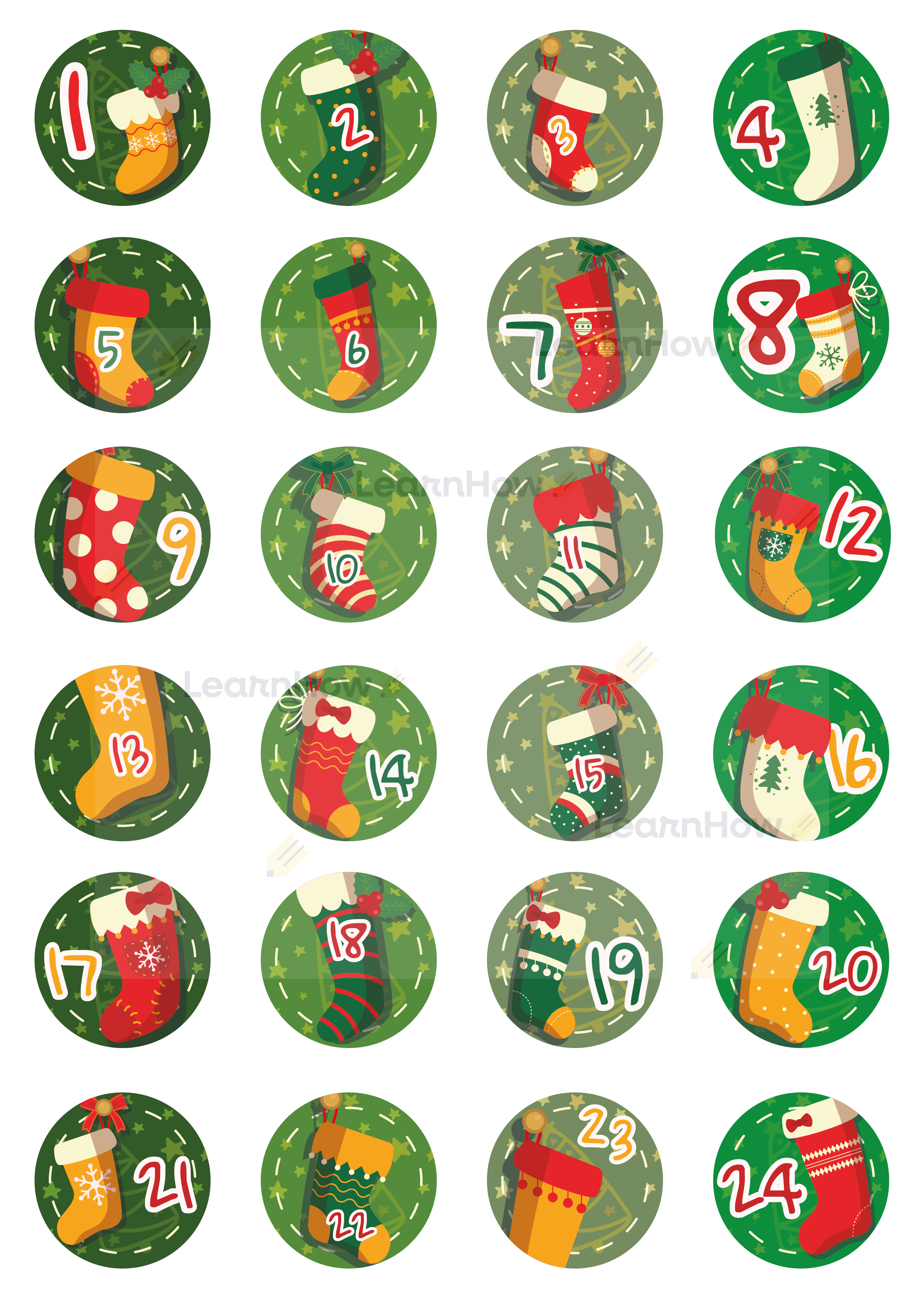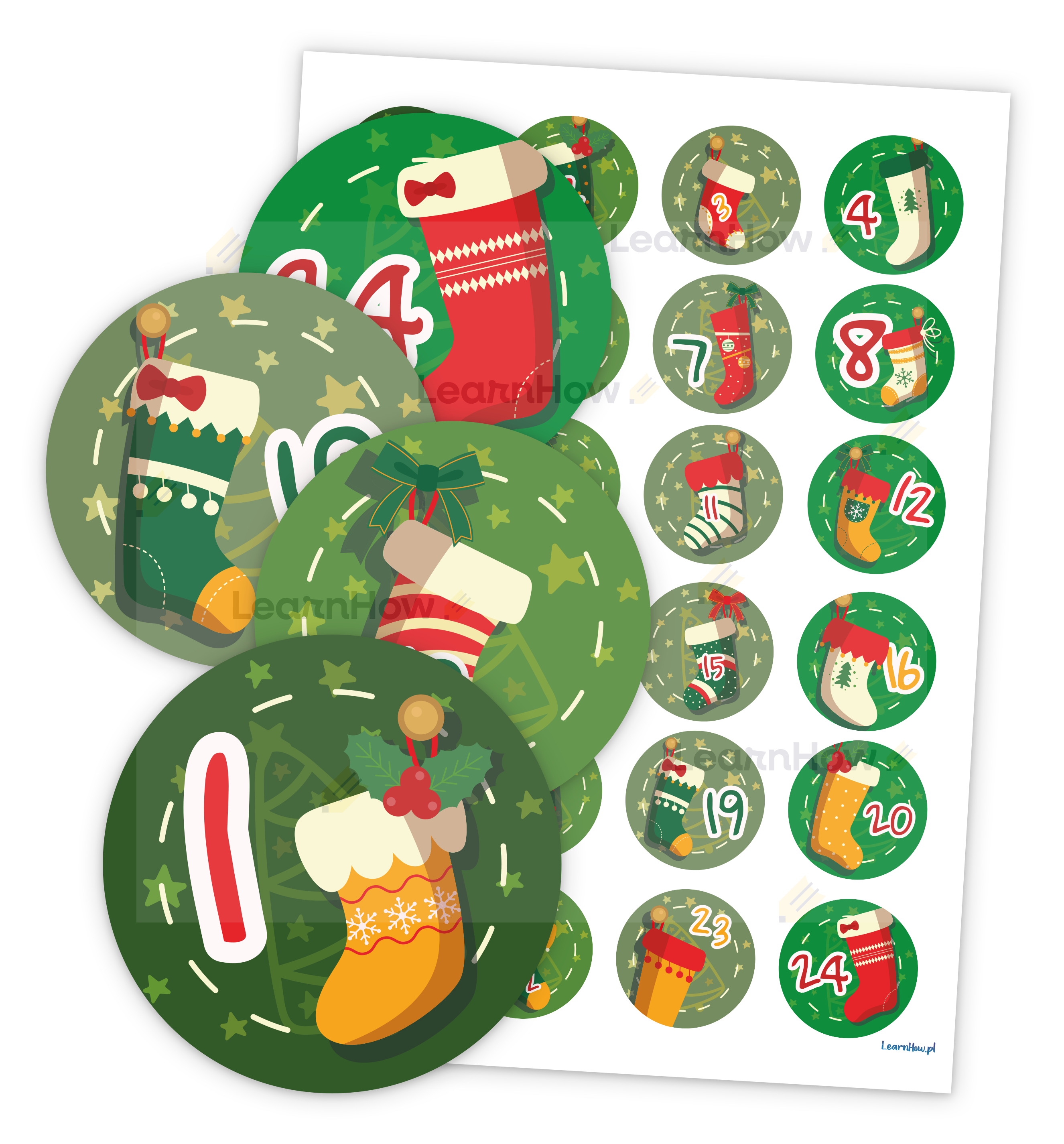 Zestaw 24 naklejek ADWENTOWYCH - idealna dekoracja do kalendarza adwentowego!