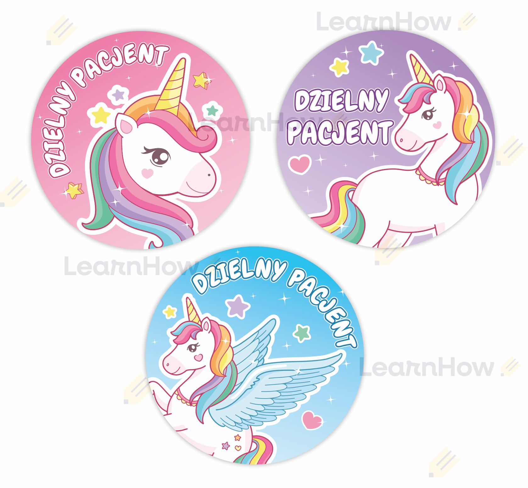 NAKLEJKI DZIELNY PACJENT - JEDNOROŻCE (60 sztuk, 60mm)