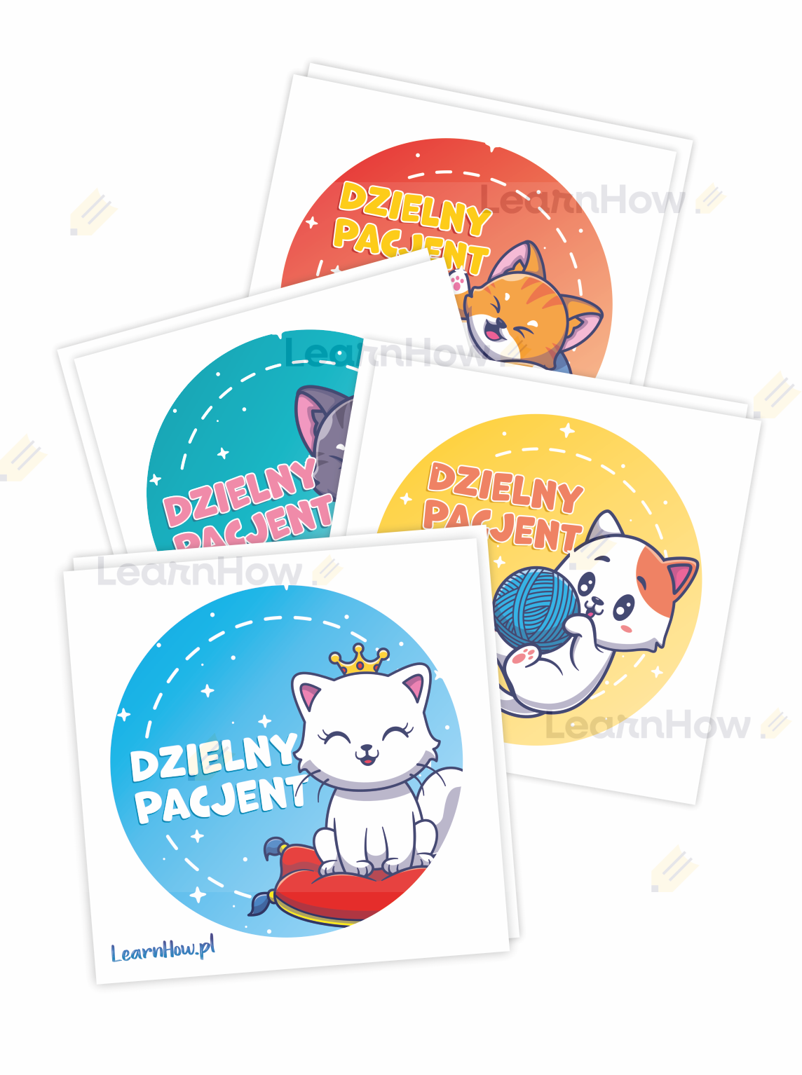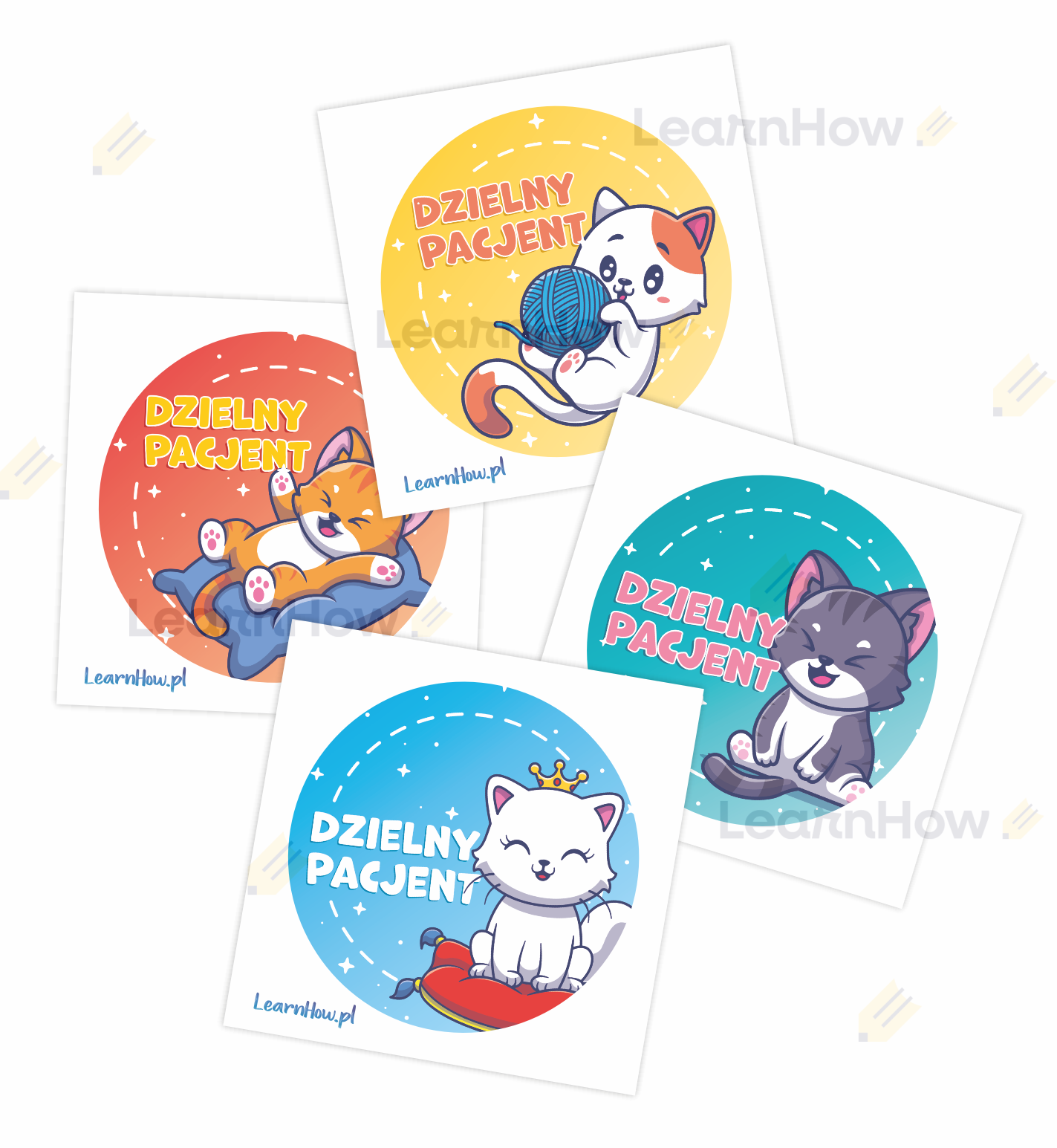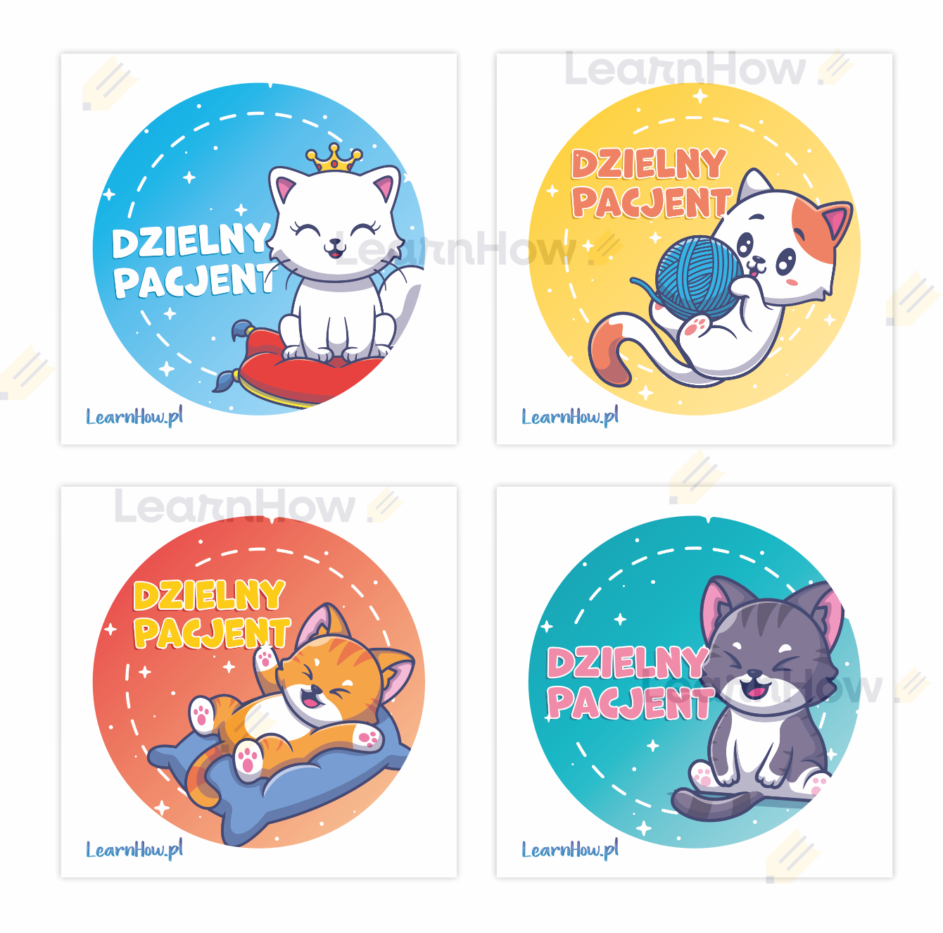 NAKLEJKI DZIELNY PACJENT - KOTKI (60 sztuk, 40mm)