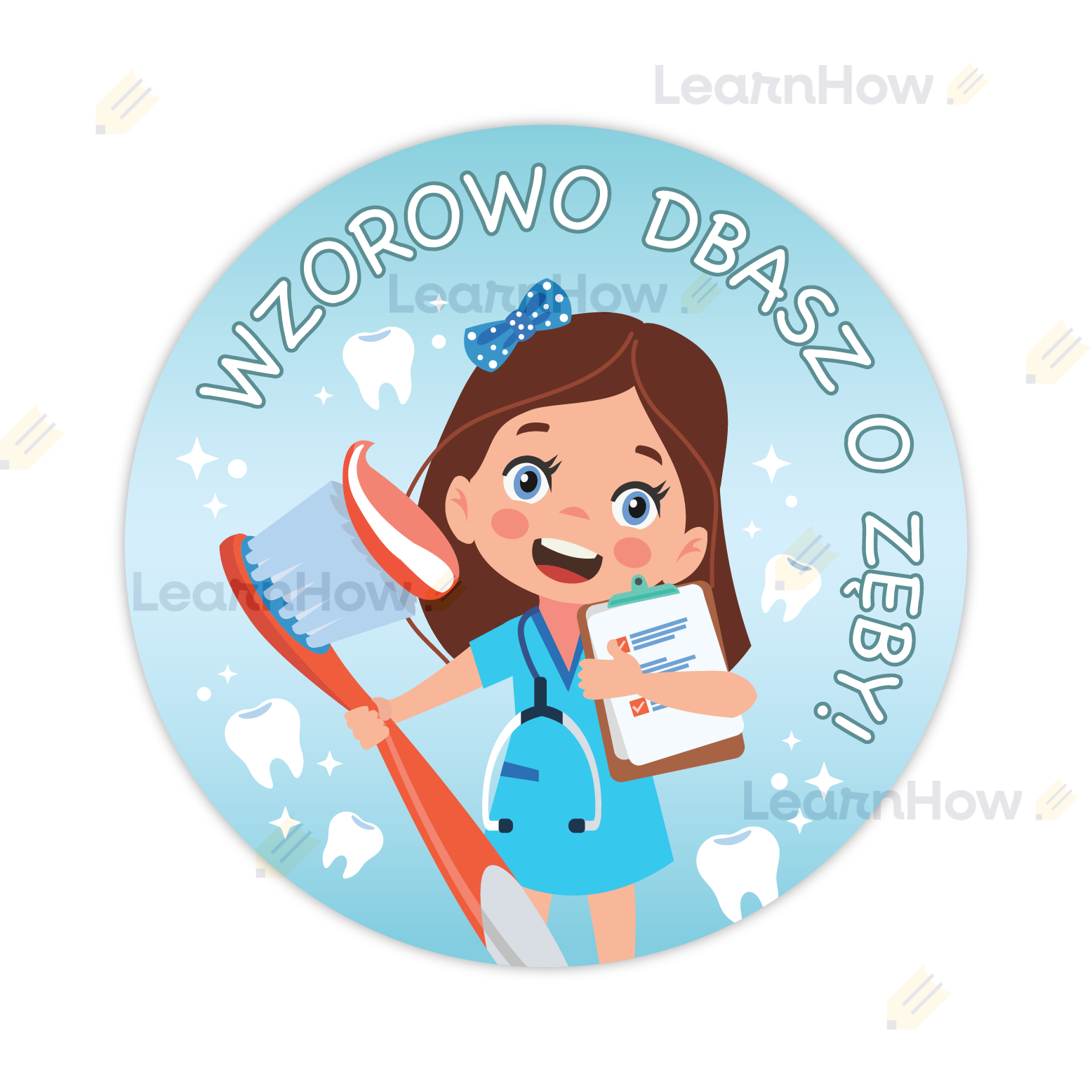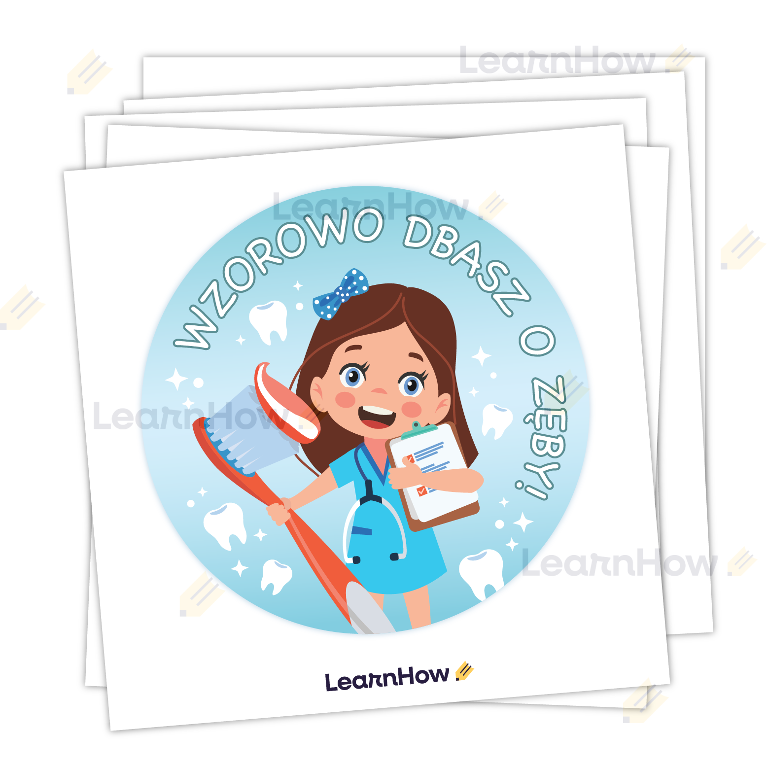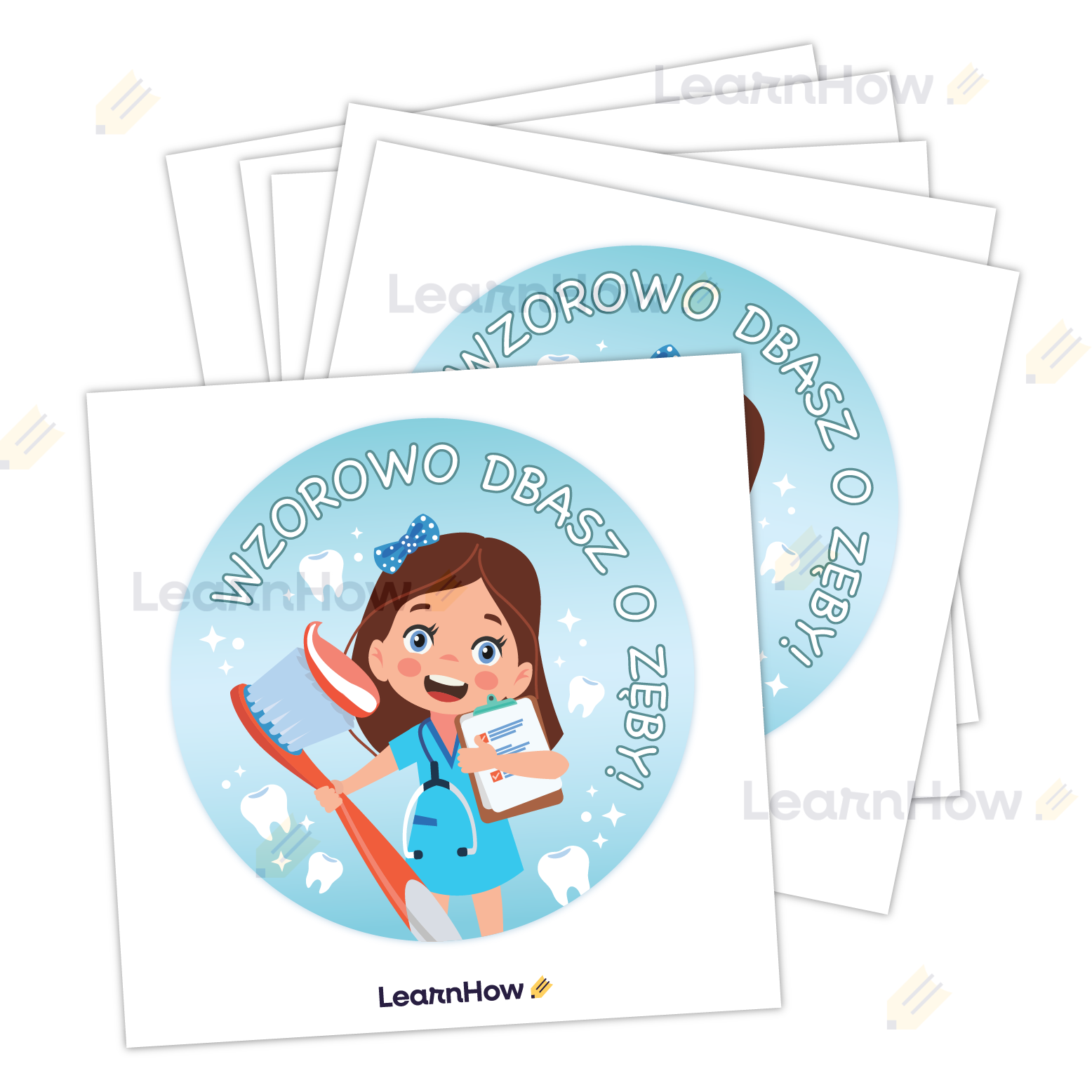 NAKLEJKI DZIELNY PACJENT - WZOROWO DBASZ O ZĘBY! (60 sztuk) - DENTYSTA STOMATOLOG