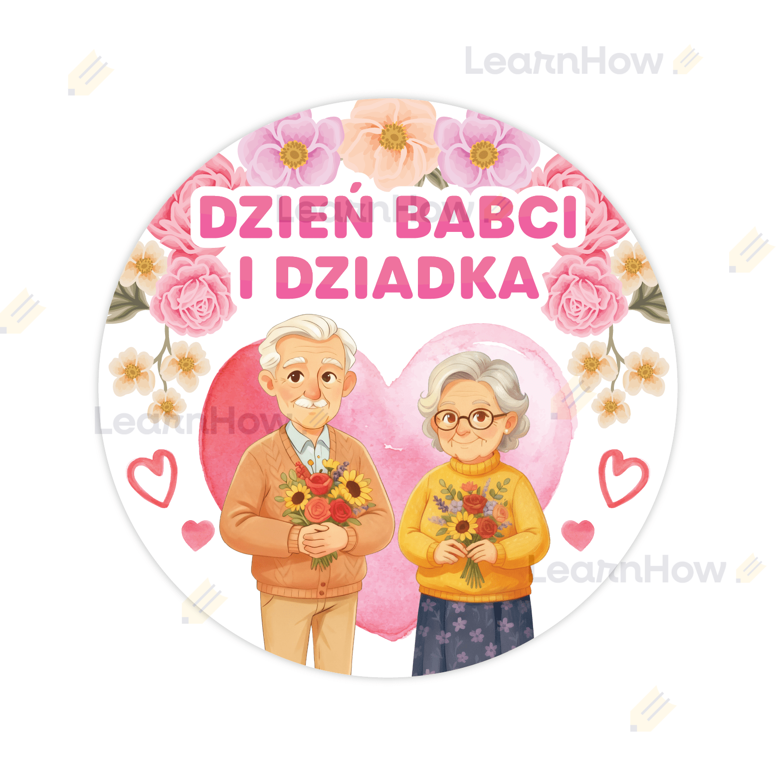 NAKLEJKI DZIEŃ BABCI I DZIADKA - BABCIA I DZIADEK (24 szt., 60mm)