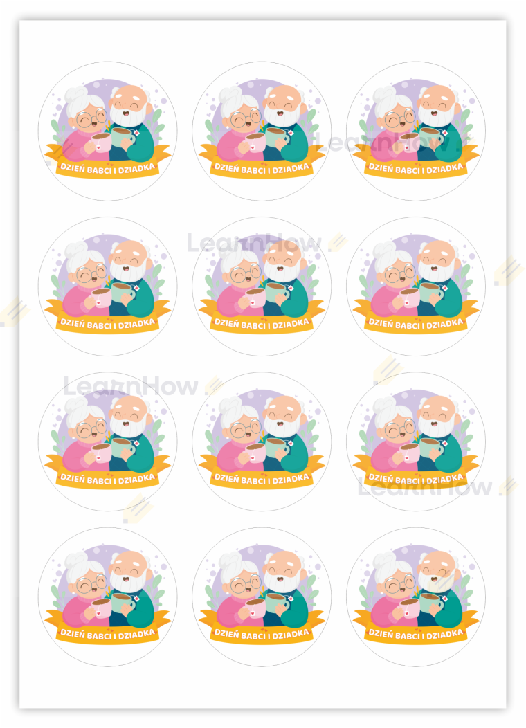 NAKLEJKI DZIEŃ BABCI I DZIADKA - BABCIA I DZIADEK (24 sztuk, 60mm)