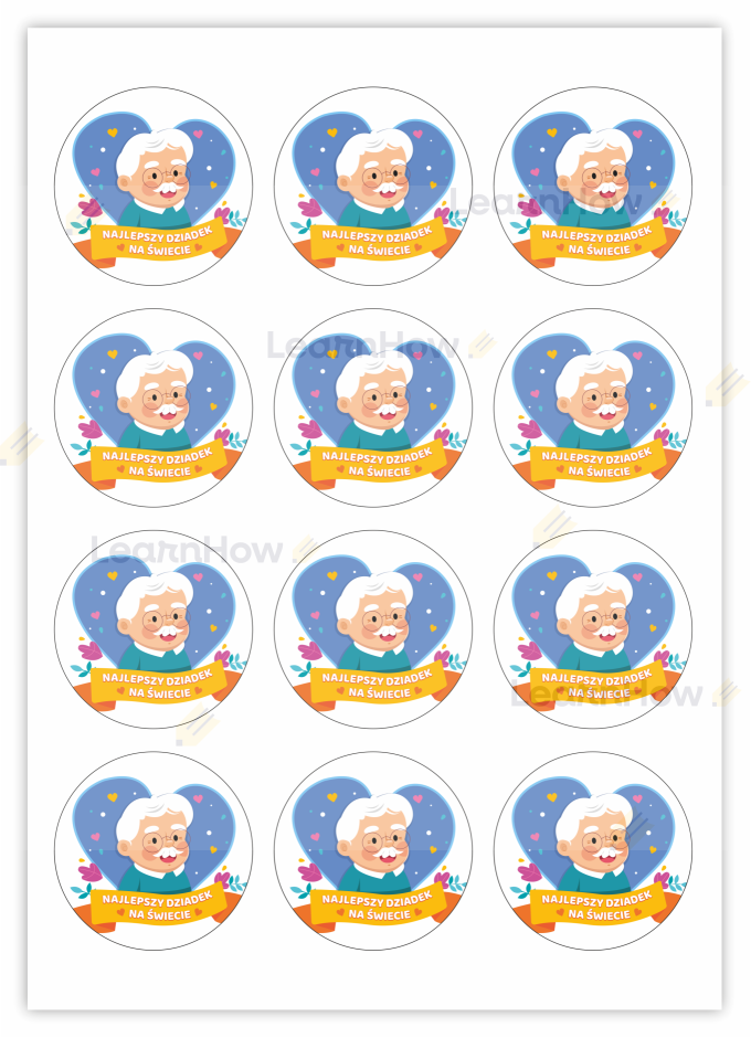 Może służyć jako naklejka na zaproszenie na przedstawienie lub odznaka dla najlepszego Dziadka.