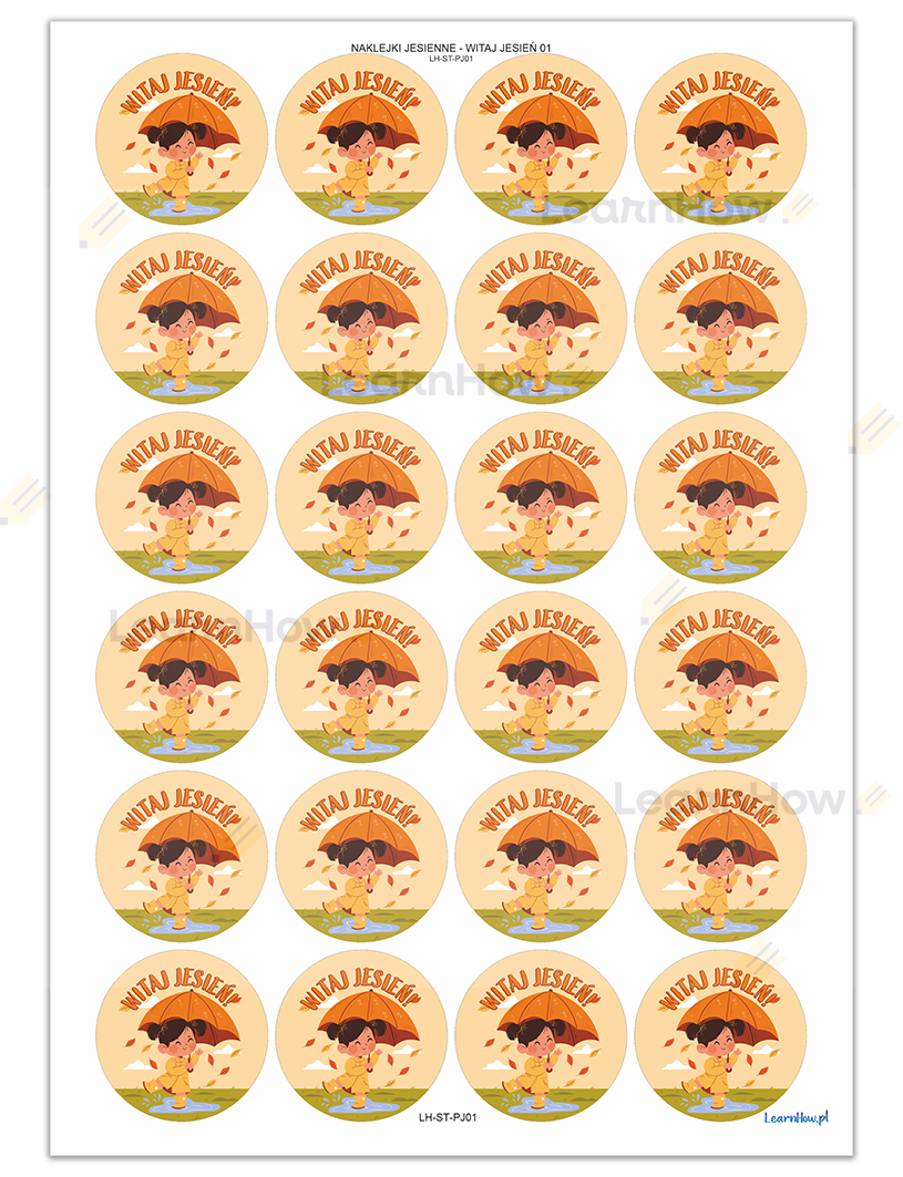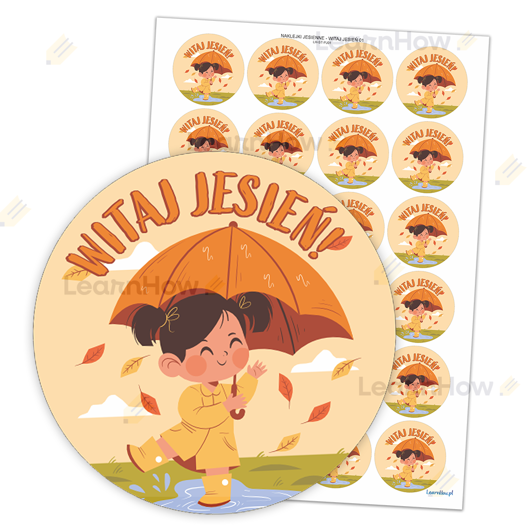 NAKLEJKI JESIEŃ - WITAJ JESIEŃ 01 (24 sztuki, 40mm)