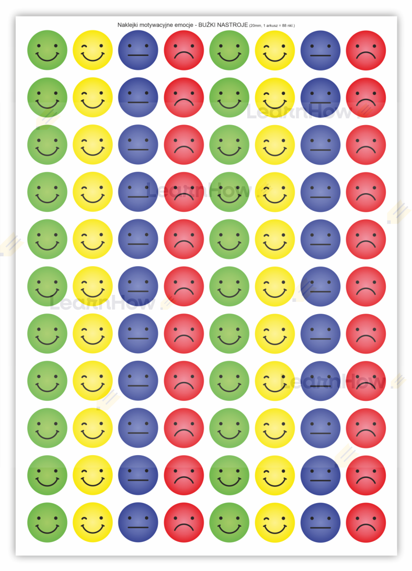 NAKLEJKI MOTYWACYJNE - BUŹKI NASTROJE (88 sztuk, 20mm)