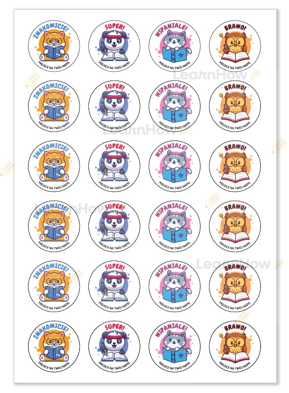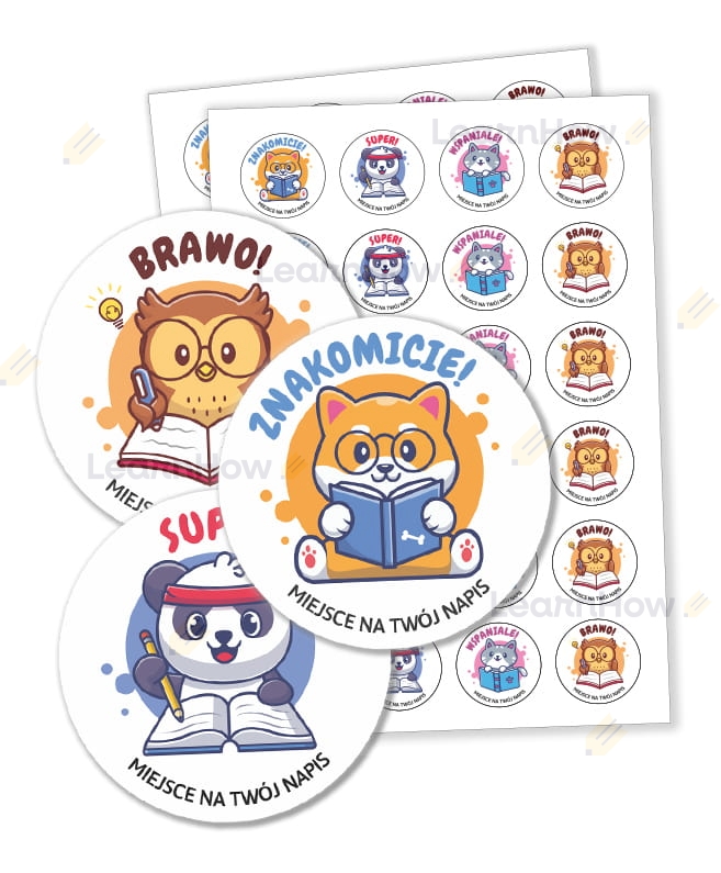 NAKLEJKI MOTYWACYJNE Z NAPISEM - SZKOLNE ZWIERZĄTKA (48 sztuk, 40mm)