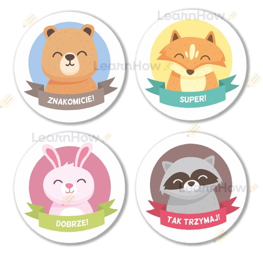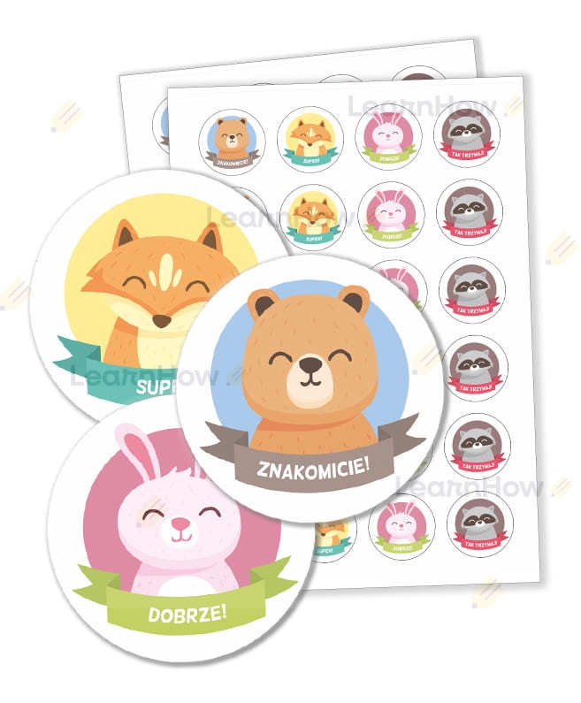 Naklejki zwierzaki motywują to 4 różne zwierzątka, które mają motywować lub nagradzać dzieci za wykonaną pracę.