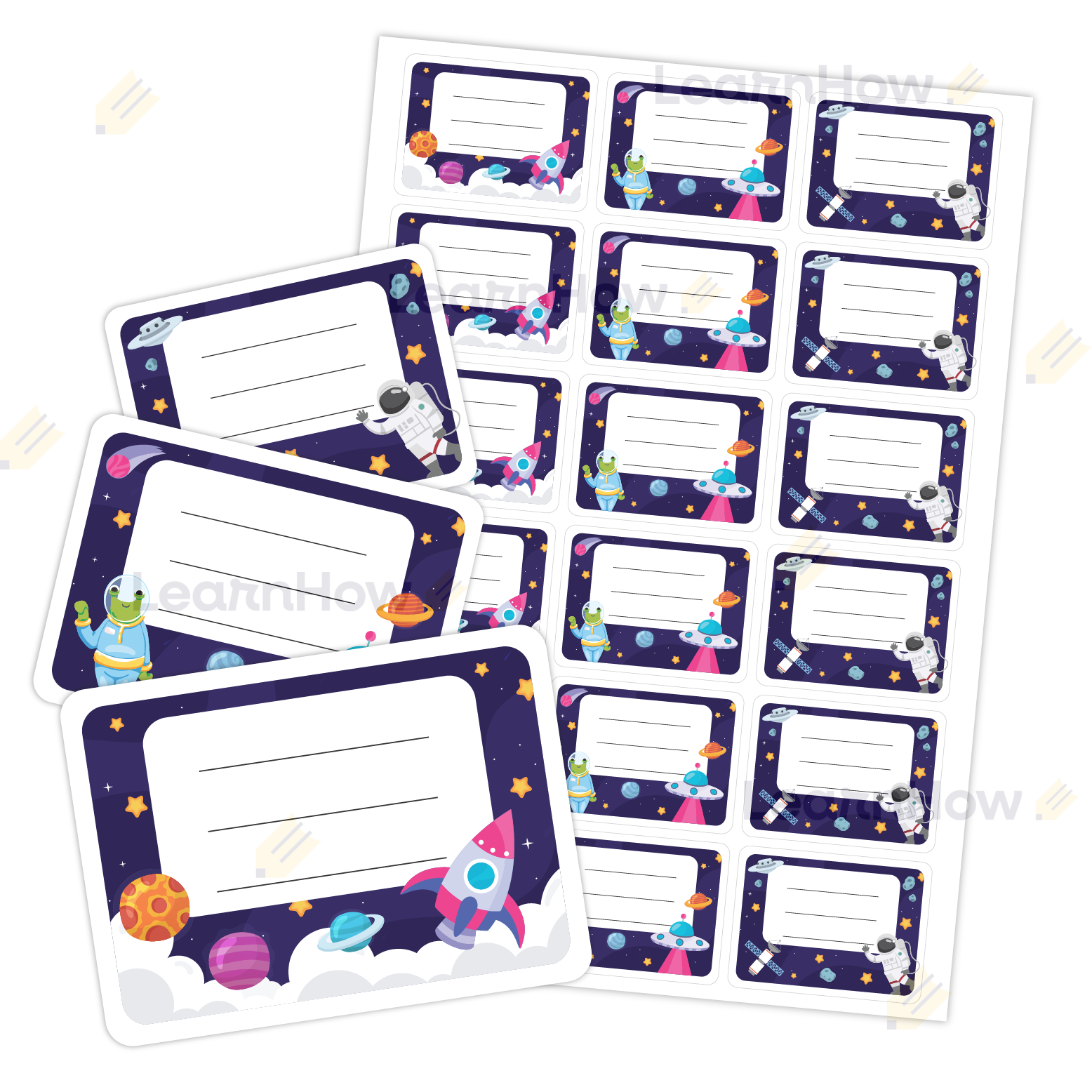 Motyw kosmosu idealnie sprawdzi się do podpisywania np.: zeszytów - szczególnie dla chłopców!