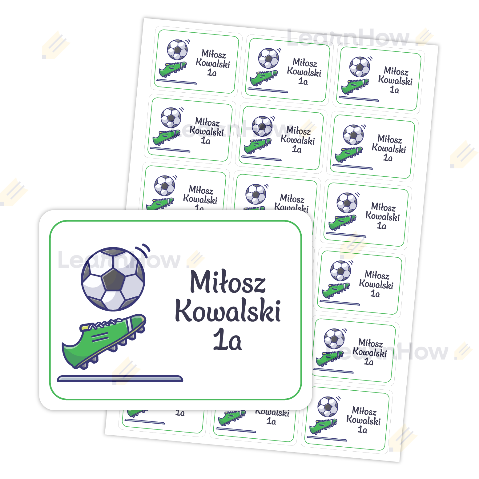 Motyw piłki idealnie sprawdzi się do podpisywania np.: zeszytów - szczególnie dla chłopców!