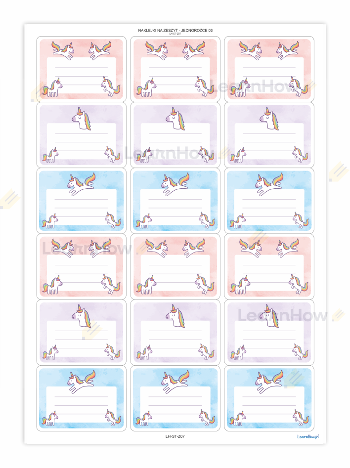 NAKLEJKI NA ZESZYTY/KSIĄŻKI - JEDNOROŻCE 03