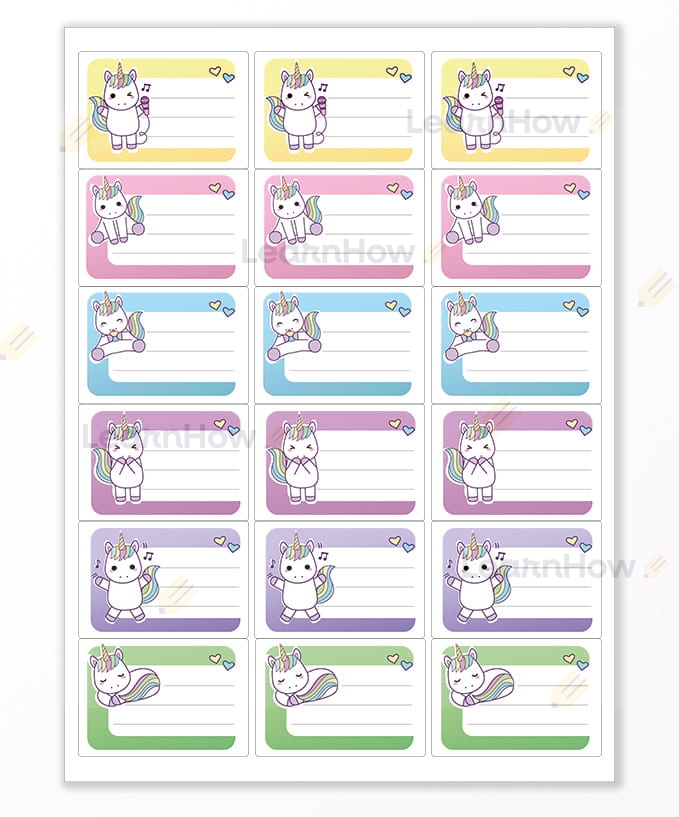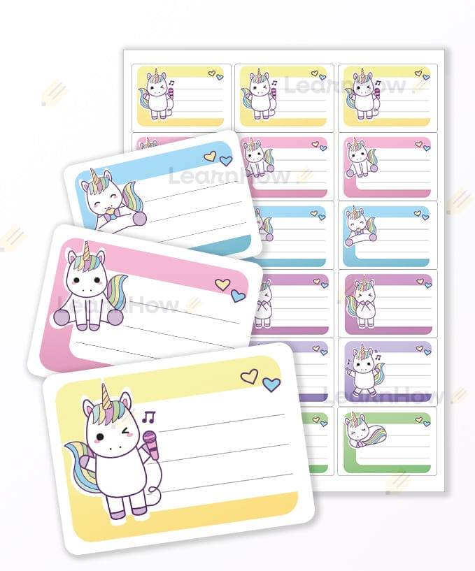 NAKLEJKI NA ZESZYTY/KSIĄŻKI - "JEDNOROŻCE" - 18 SZTUK