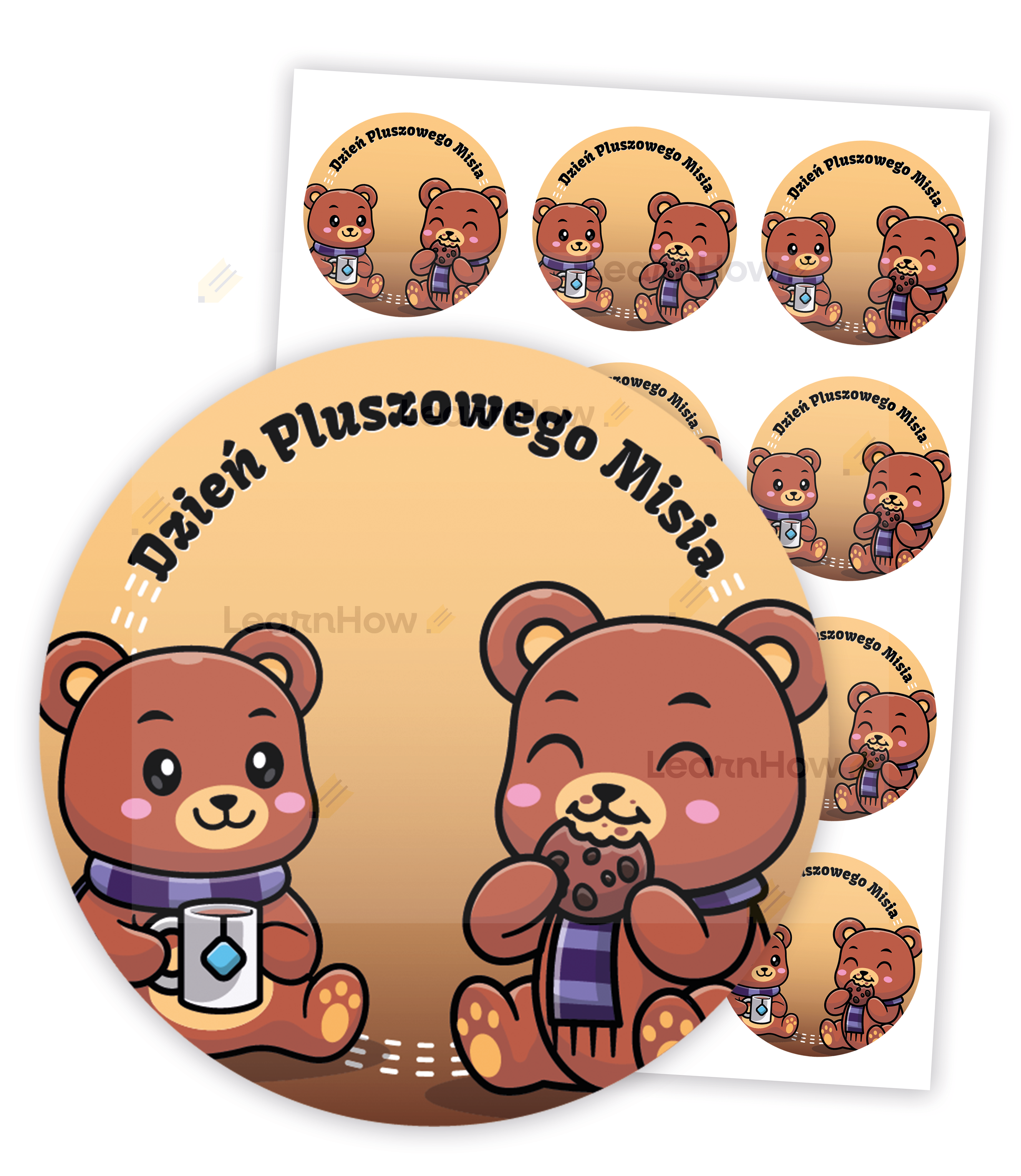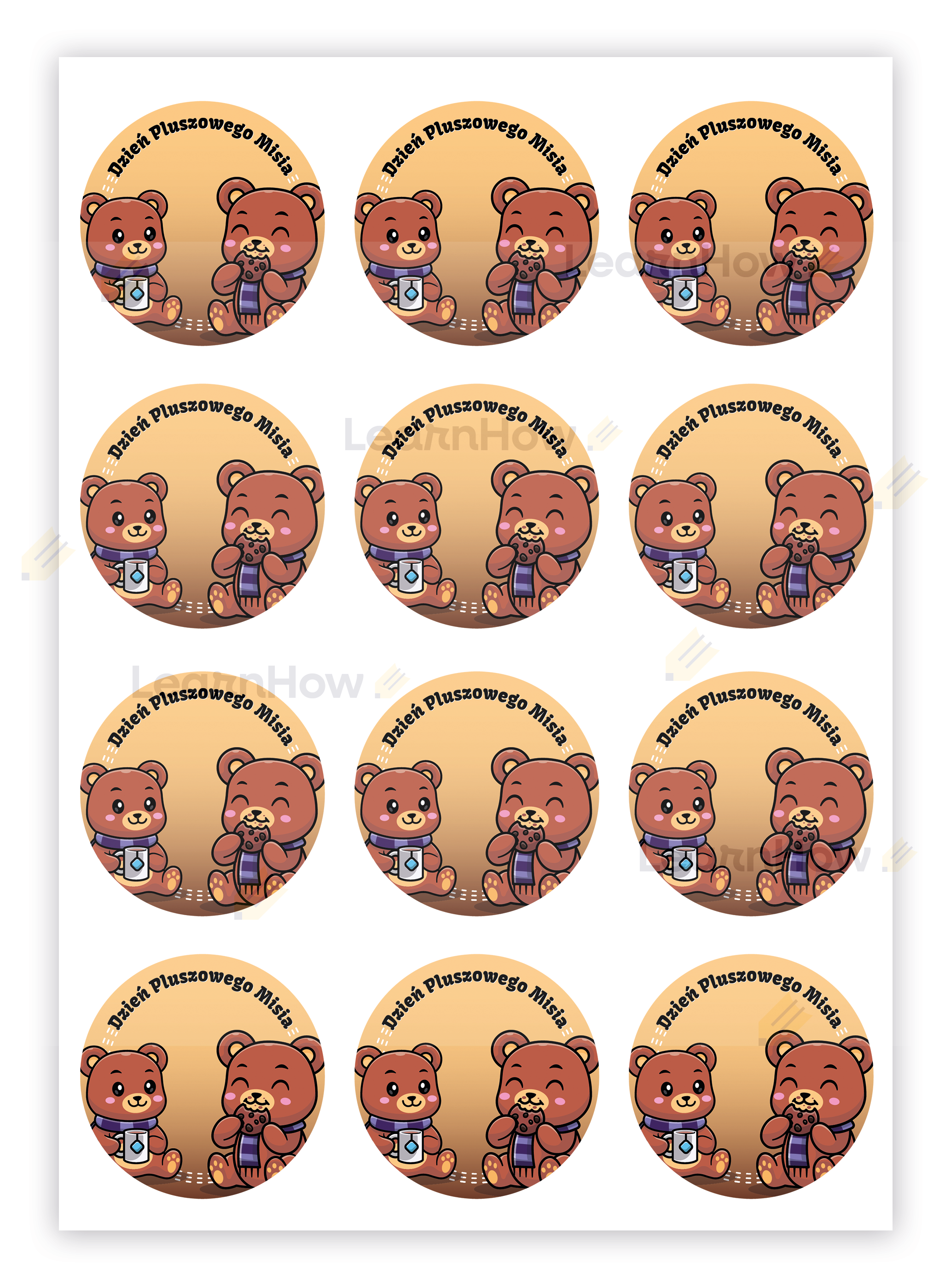 NAKLEJKI OKOLICZNOŚCIOWE - DZIEŃ PLUSZOWEGO MISIA 01 (24 sztuk, 60mm)