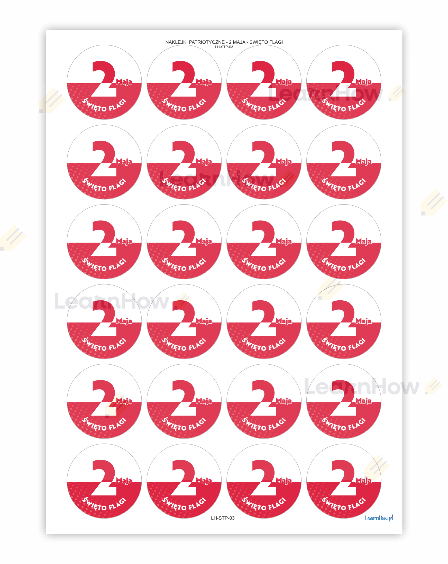 NAKLEJKI PATRIOTYCZNE - 2 MAJA - ŚWIĘTO FLAGI (24 sztuk, 40 mm)
