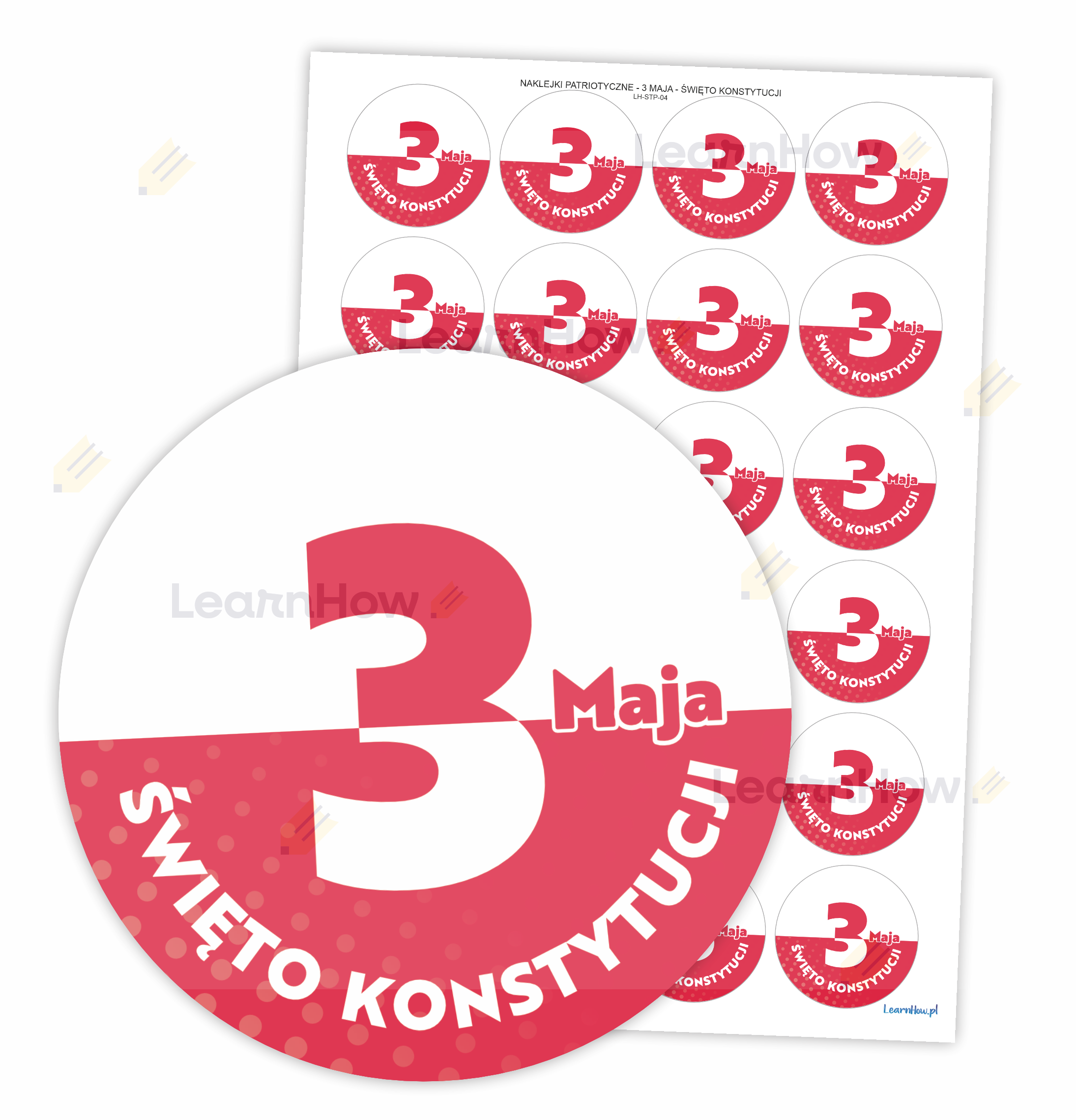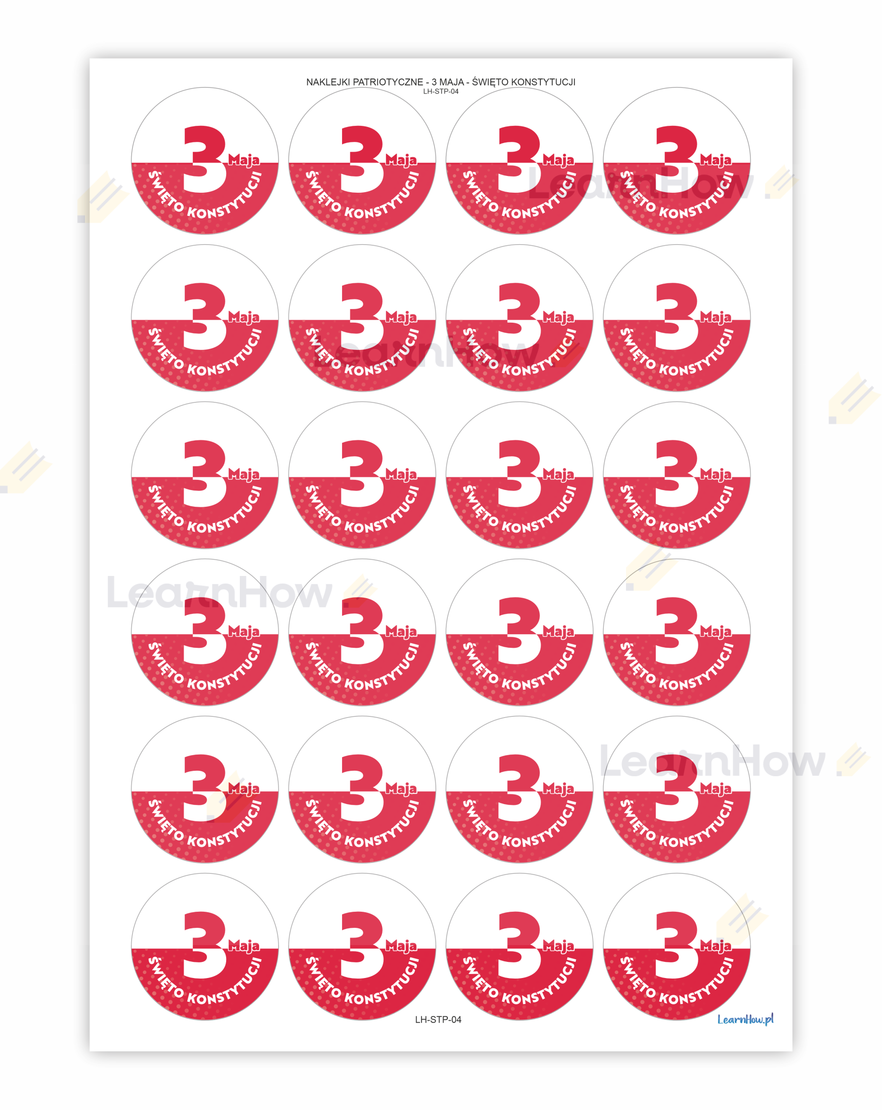 NAKLEJKI PATRIOTYCZNE - 3 MAJA - ŚWIĘTO KONSTYTUCJI (24 sztuk, 40 mm)