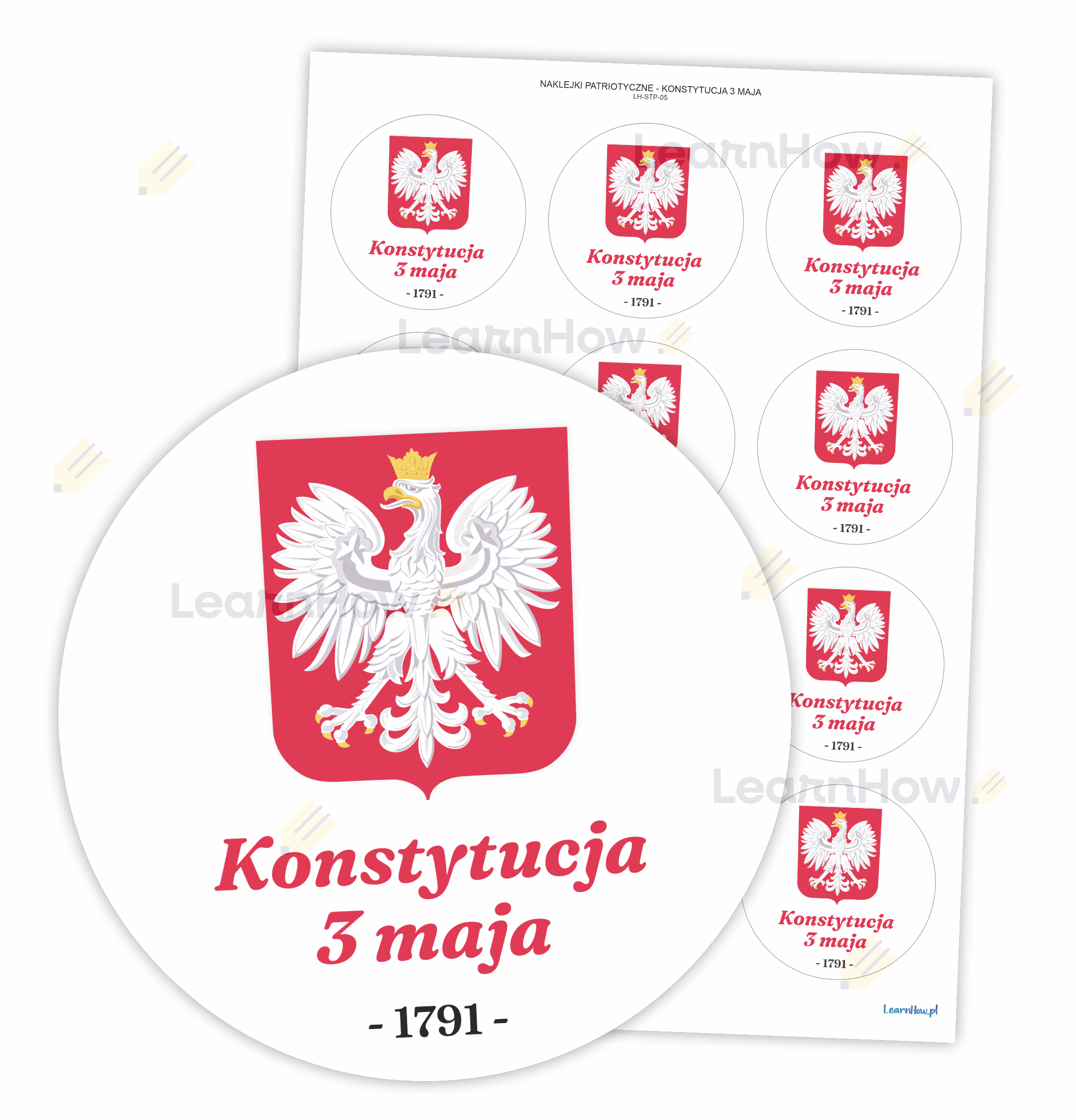 NAKLEJKI PATRIOTYCZNE - ŚWIĘTO KONSTYTUCJI 3 MAJA (24 sztuki, 60 mm)