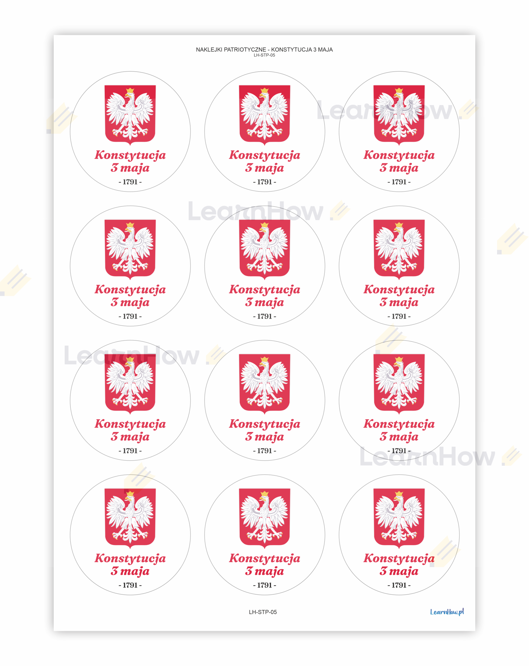 Pasują do całego zestawu naszych naklejek oraz dekoracji na Święto Konstytucji - 3 maja.