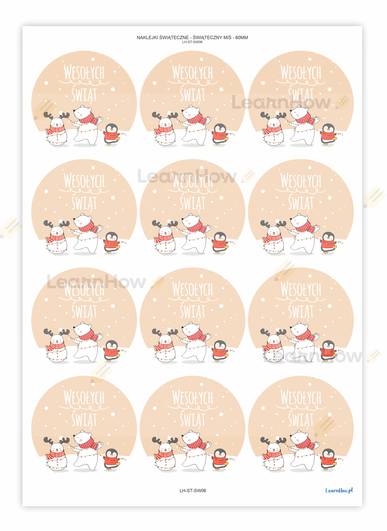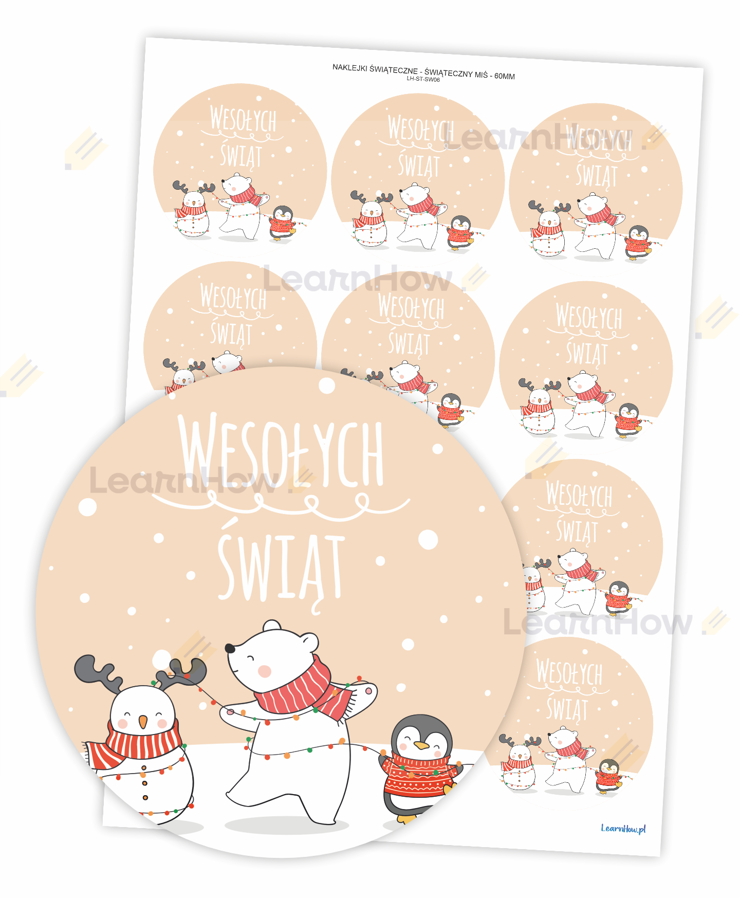 NAKLEJKI ŚWIĄTECZNE - DUŻY ŚWIĄTECZNY MIŚ (24 sztuk, 60mm)