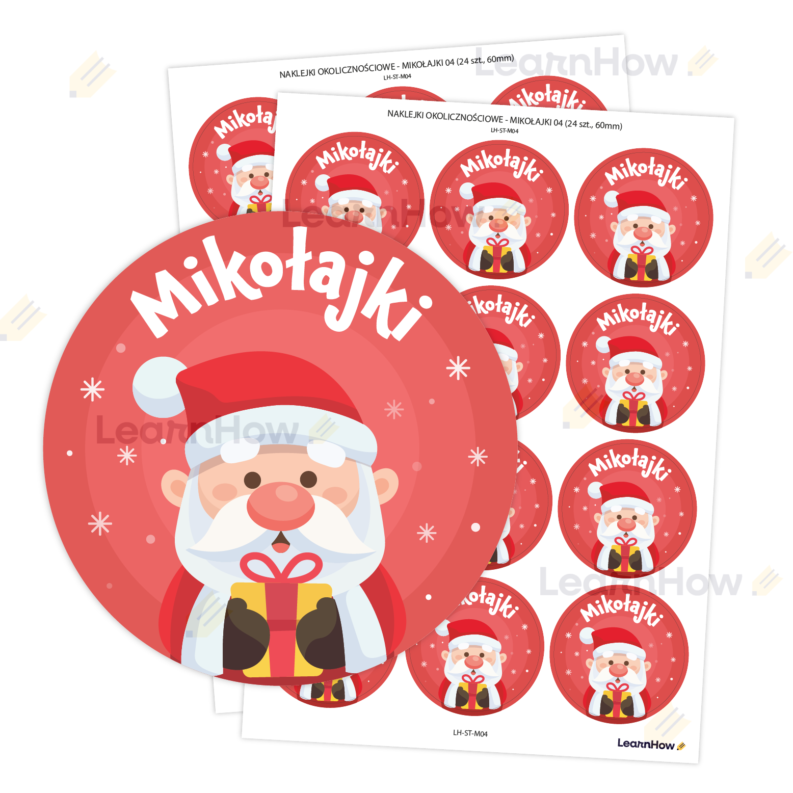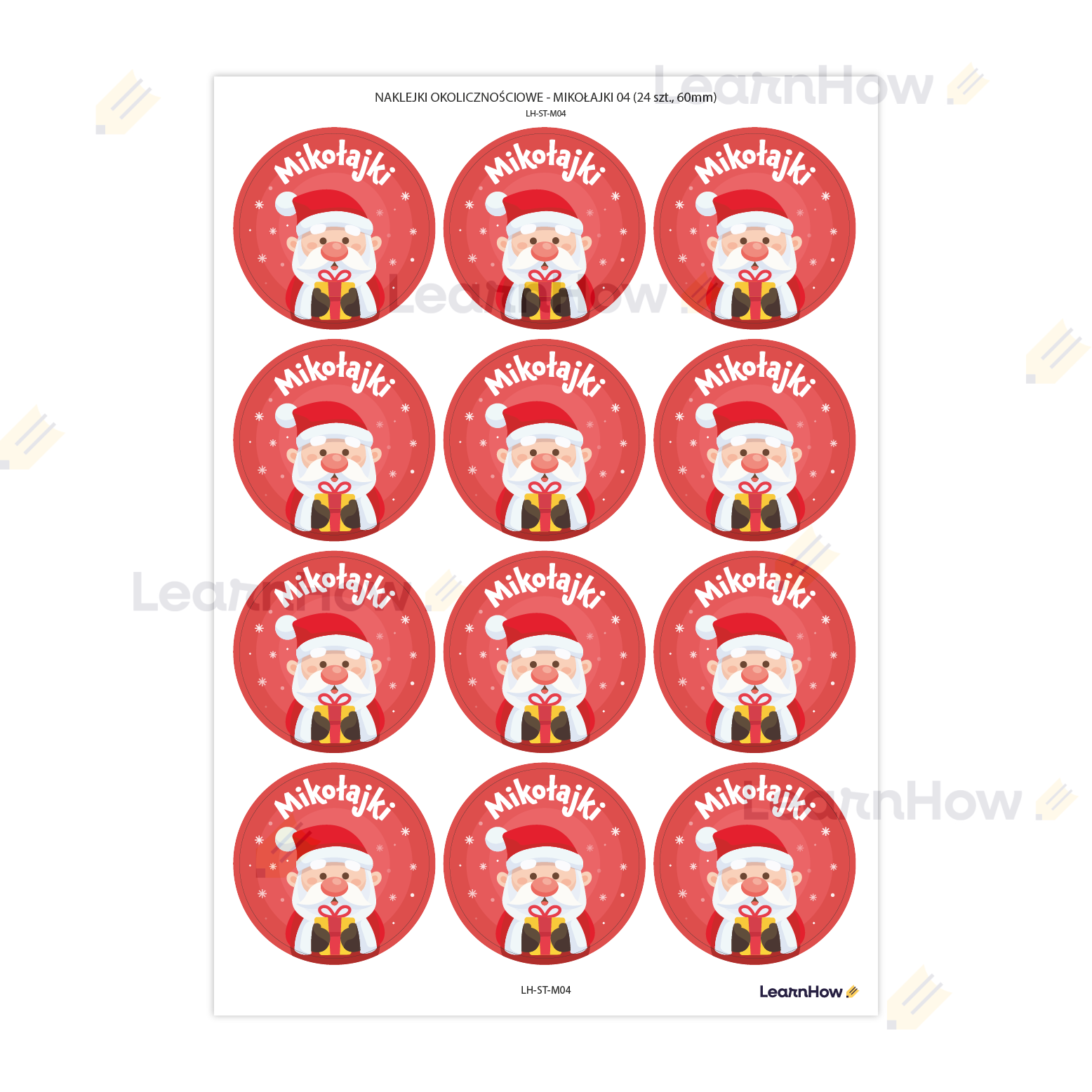 NAKLEJKI ŚWIĄTECZNE - MIKOŁAJKI 04 (24 szt., 60mm)