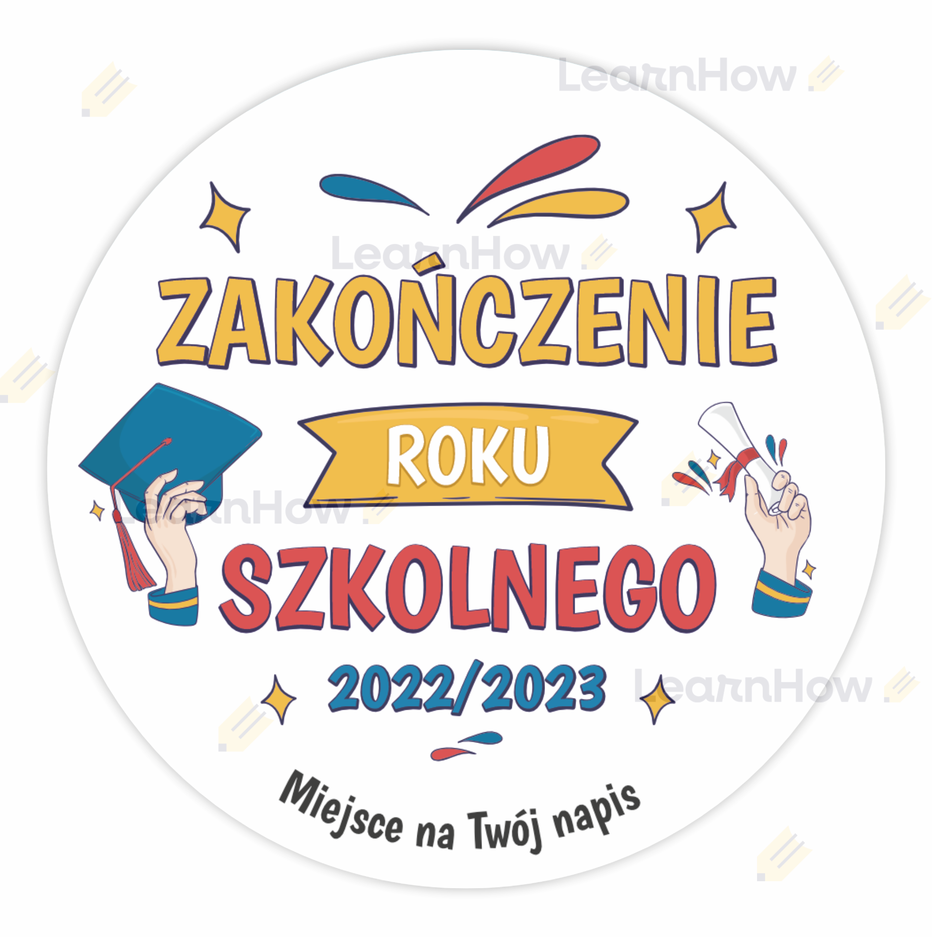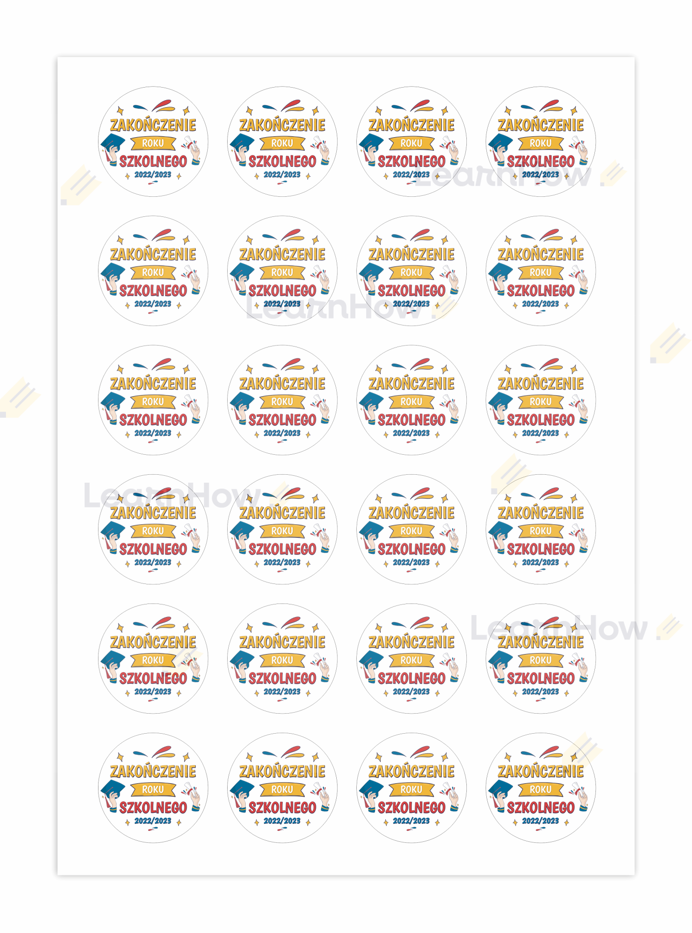 NAKLEJKI ZAKOŃCZENIE ROKU - ROK SZKOLNY 2022/2023 + NAPIS (48 sztuk, 40mm)
