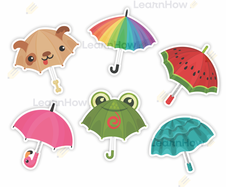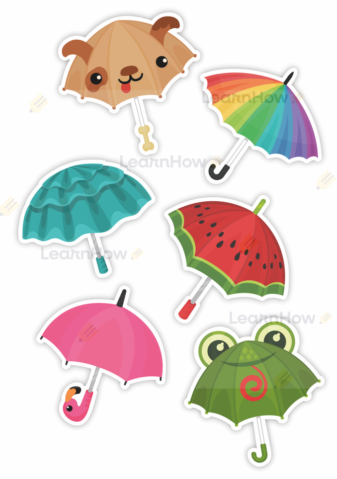 Zestaw składa się z 6 różnych parasolek - idealne do wiosennej dekoracji szkoły i przedszkola.