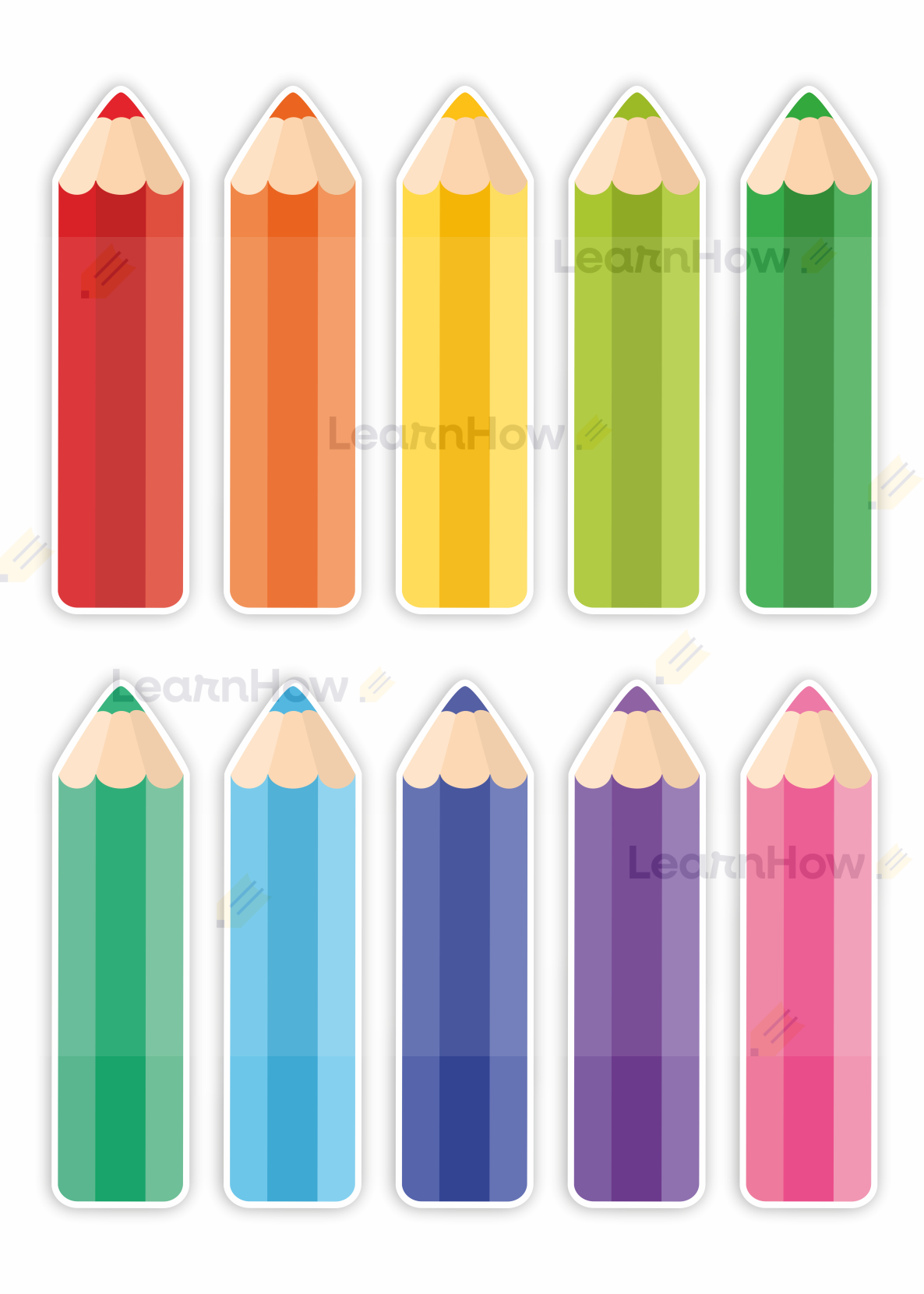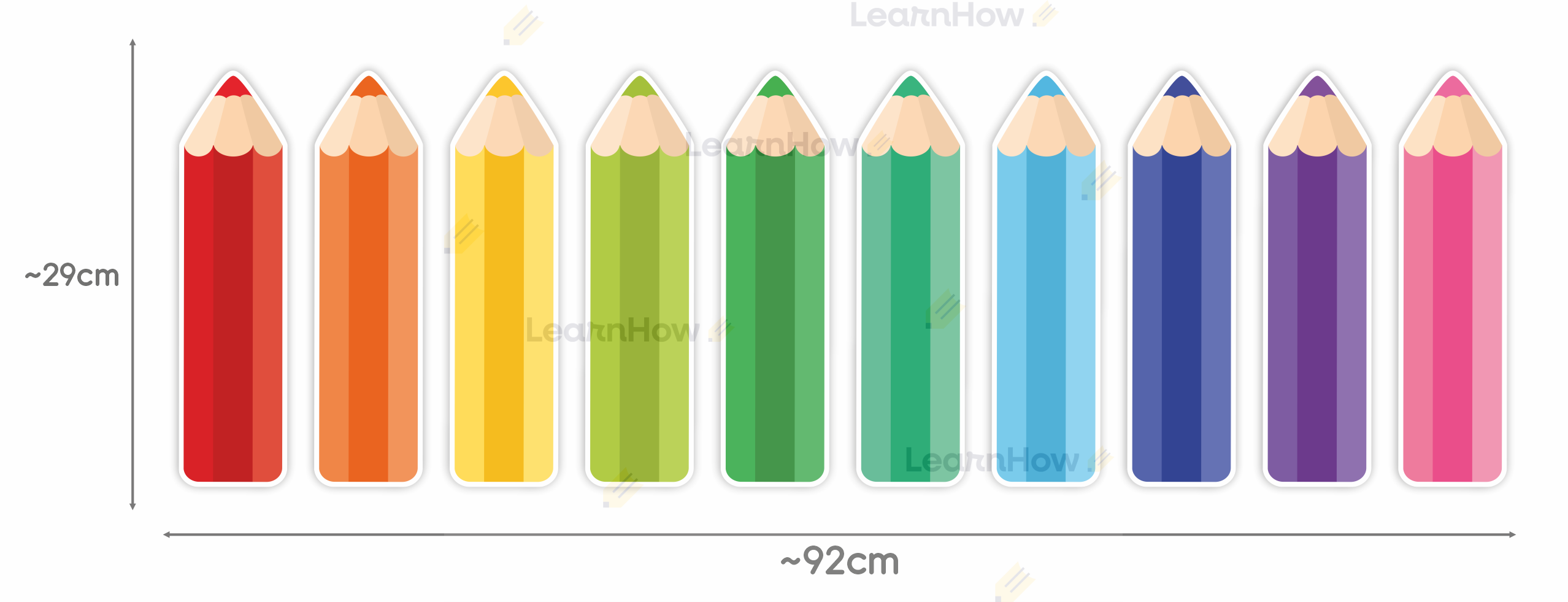 Zestaw składa się z 10 dużych dekoracji kredek - idealne szczególnie do szkoły i przedszkola.