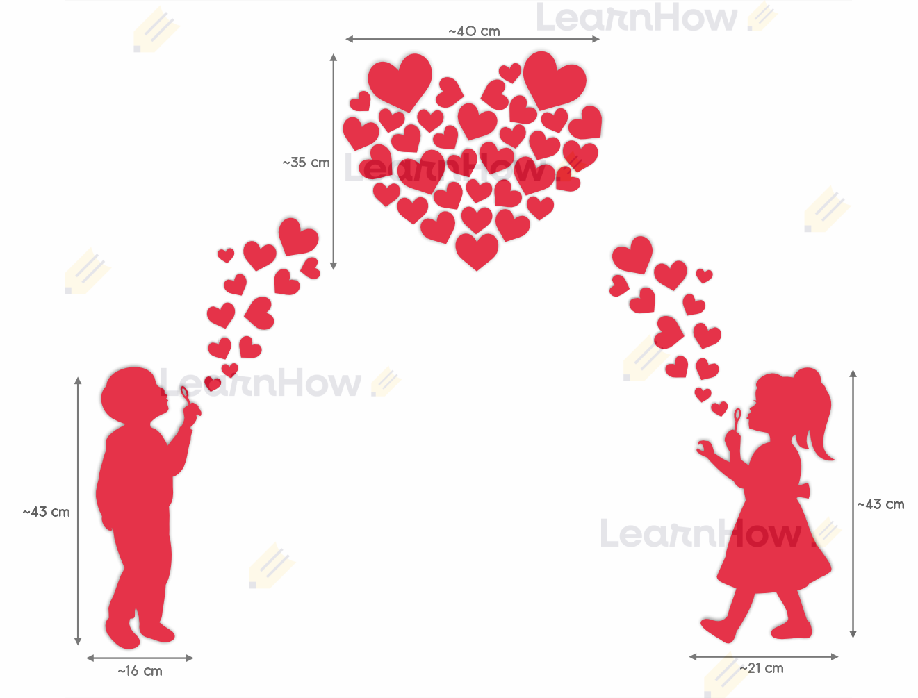 Zestaw składa się z 2 dużych postaci dzieci i aż 58 wyciętych serc - idealny do szkoły i przedszkola!