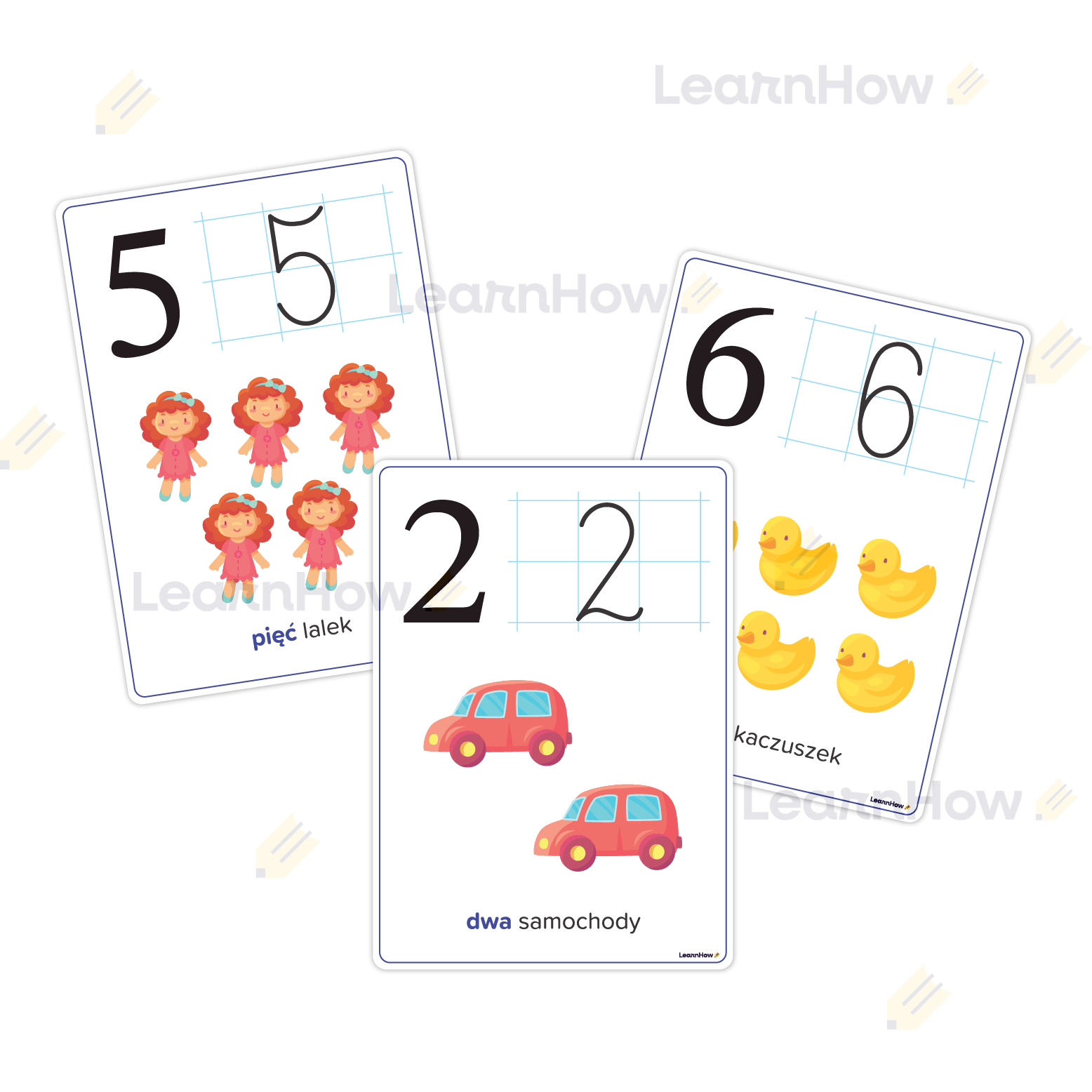 Na każdej planszy dodatkowo znajduje się obrazek z zabawkami odpowiadający zapisowi liczbowemu.
