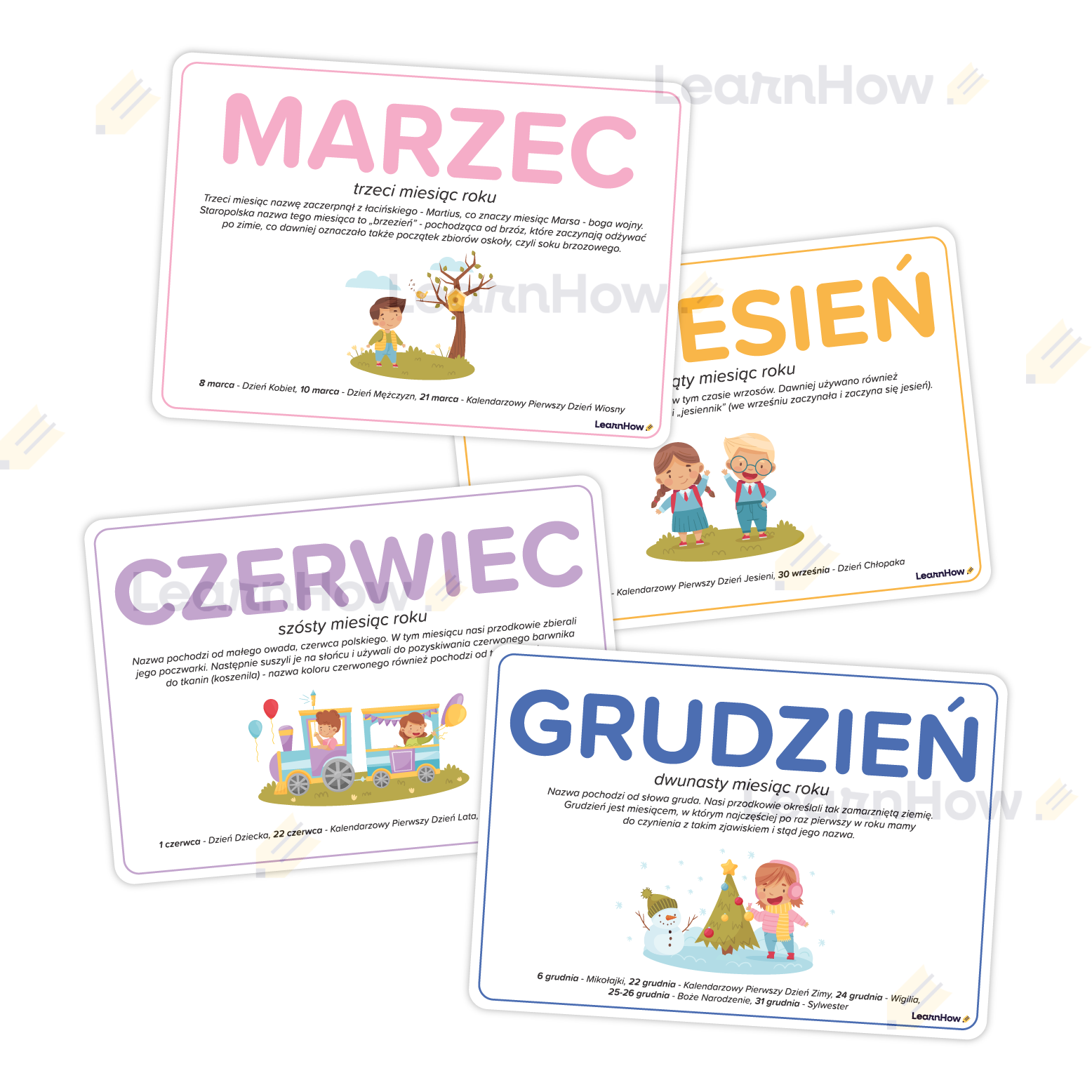 PLANSZE EDUKACYJNE - MIESIĄCE - NAZWY I CIEKAWOSTKI (zestaw 12 kart)