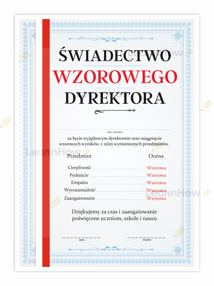 ŚWIADECTWO WZOROWEGO DYREKTORA - Z CZERWONYM PASKIEM