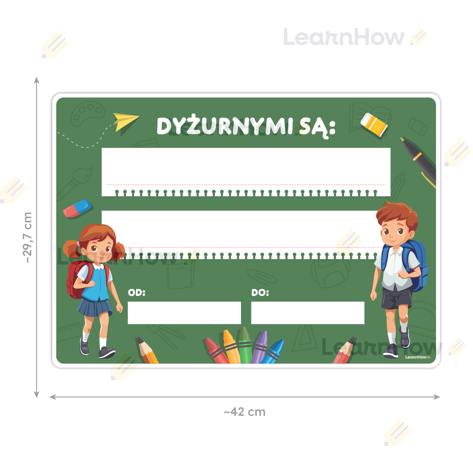 Tablica dyżurnych w postaci plakatu to idealna dekoracja szkolnych sal.