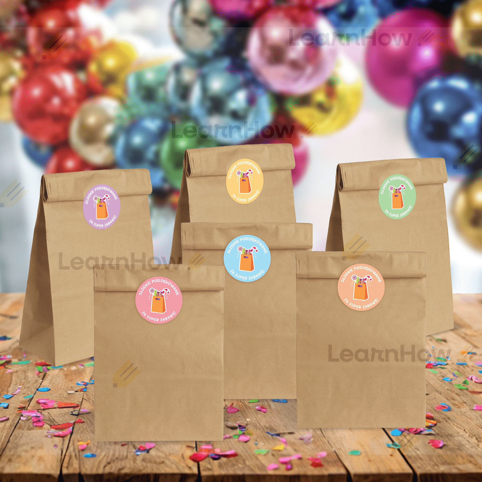 TOREBKI PODZIĘKOWANIA - SŁODYCZE (6 torebek + 6 naklejek)
