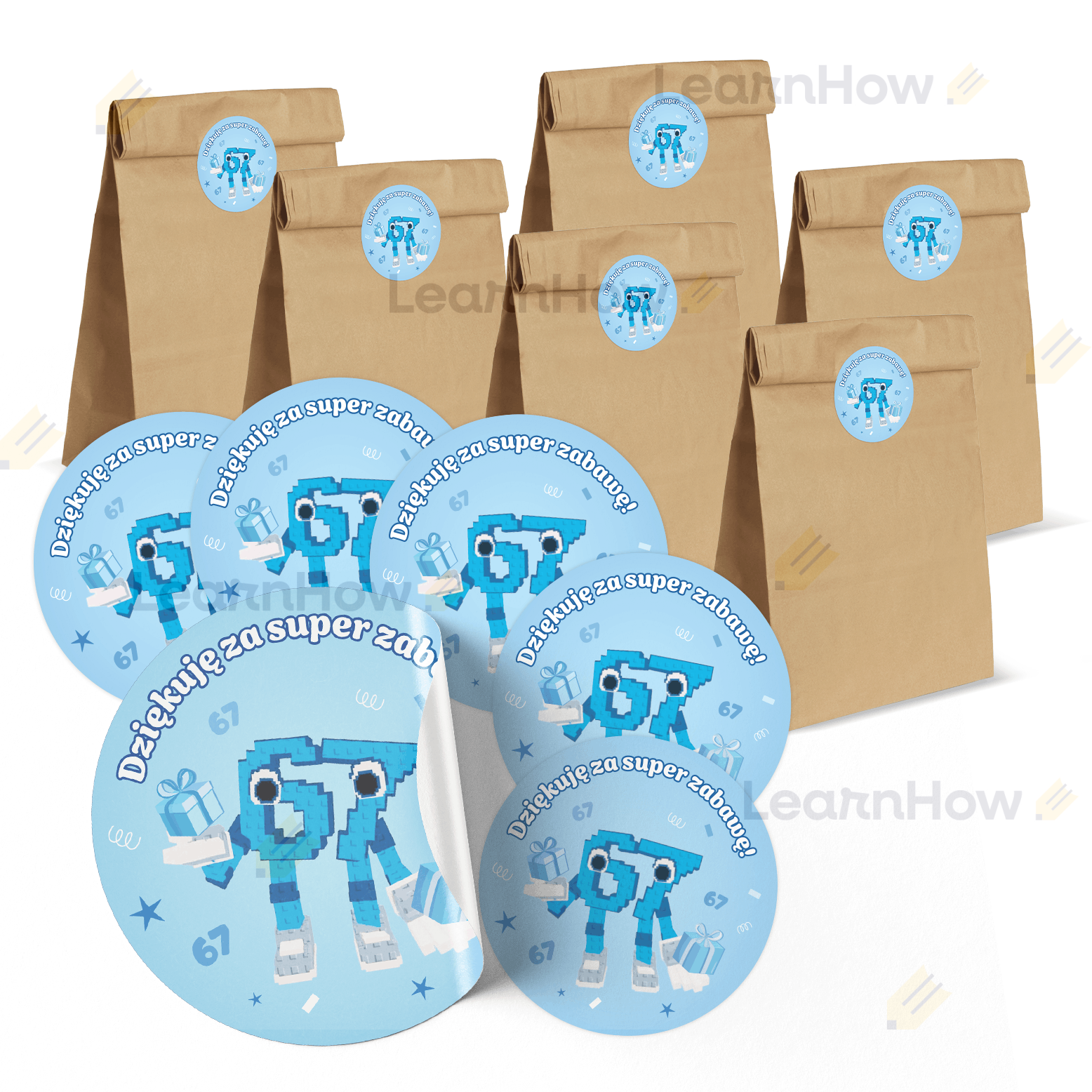 TOREBKI PODZIĘKOWANIA URODZINOWE - SIX SEVEN (67) - (6 torebek + 6 naklejek)