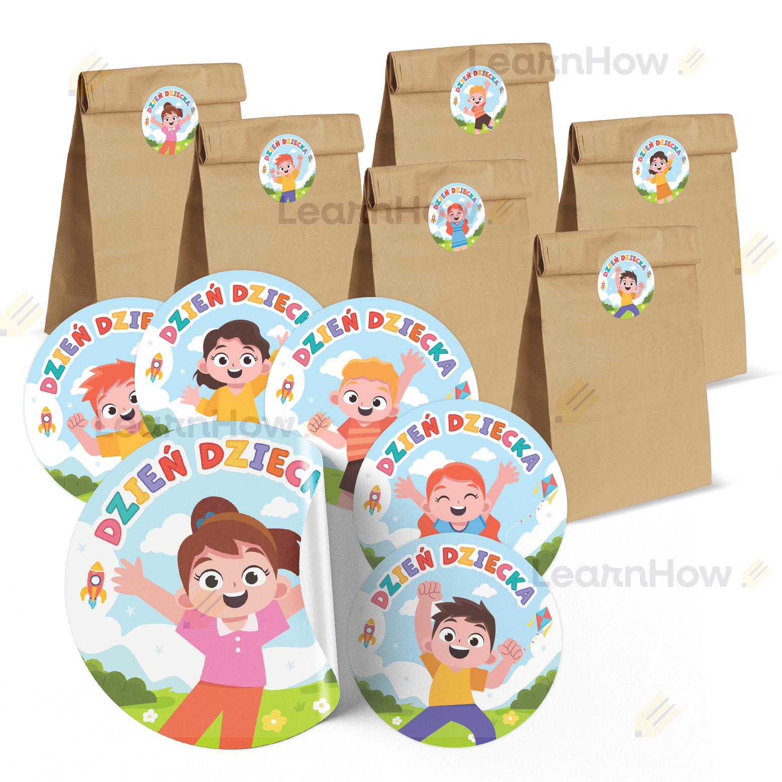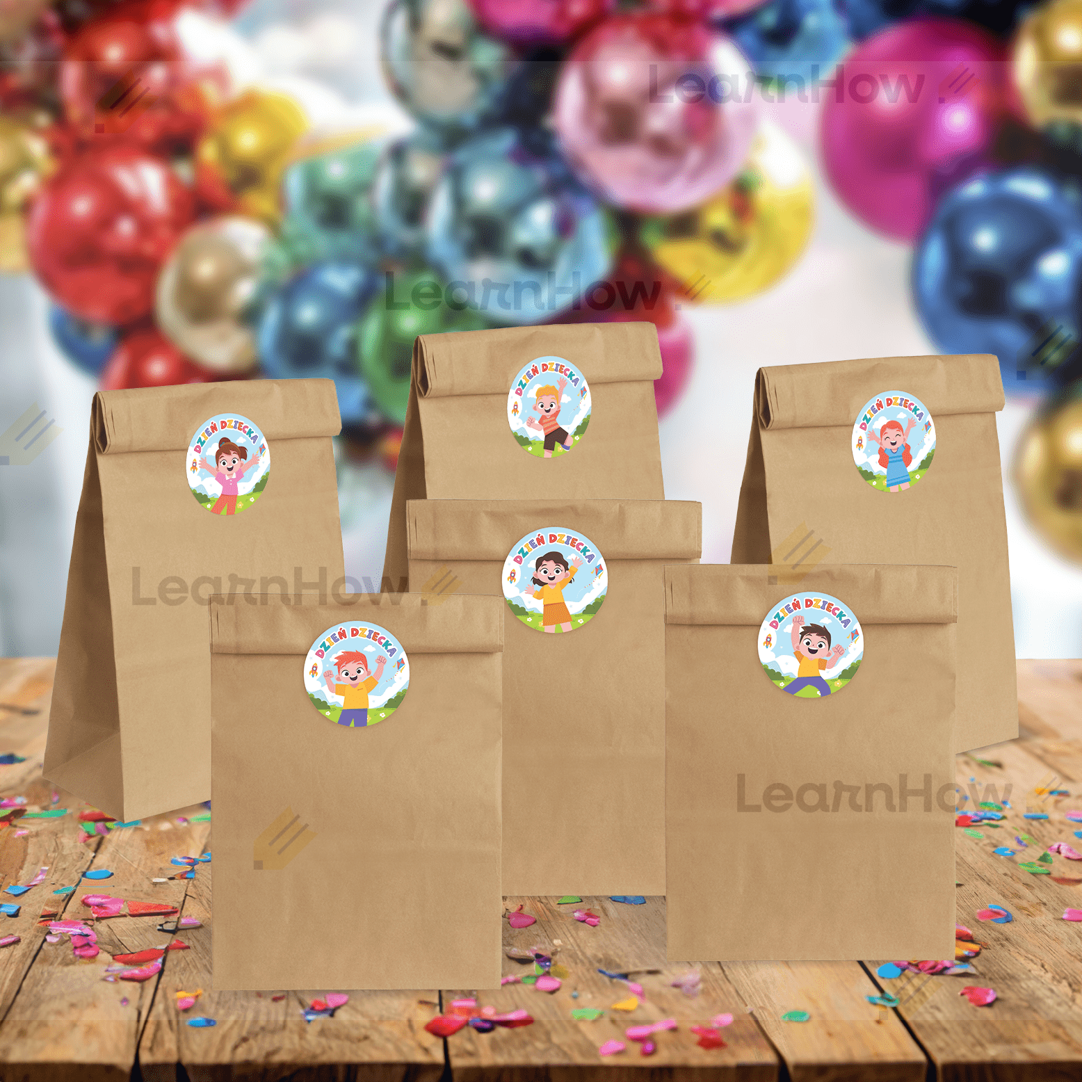 TOREBKI PREZENTOWE - DZIEŃ DZIECKA (6 torebek + 6 naklejek)