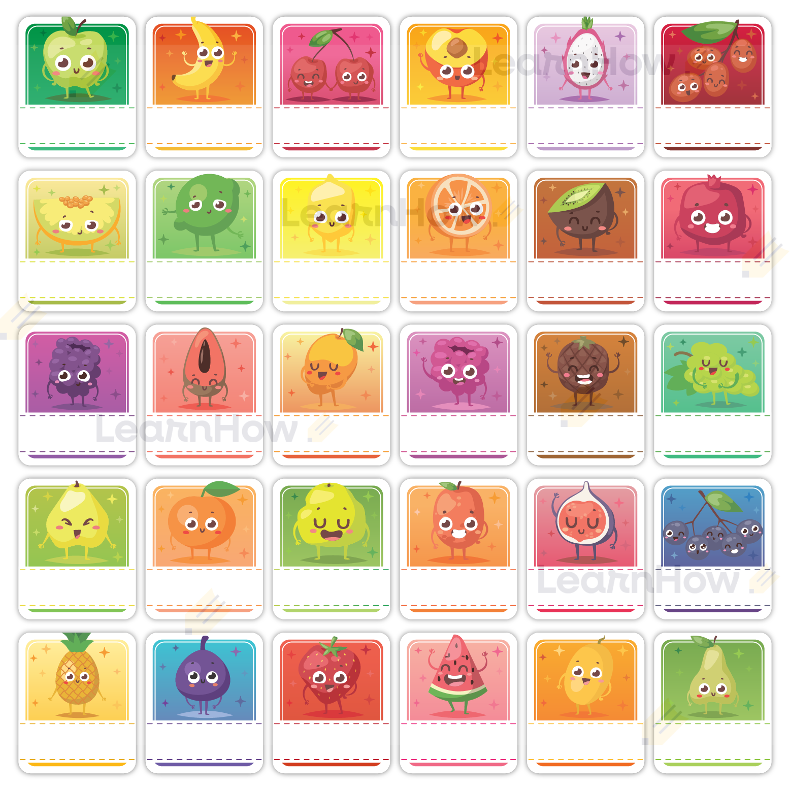 ZNACZKI DO SZATNI - OWOCE - (30 szt. + kropki klejowe)