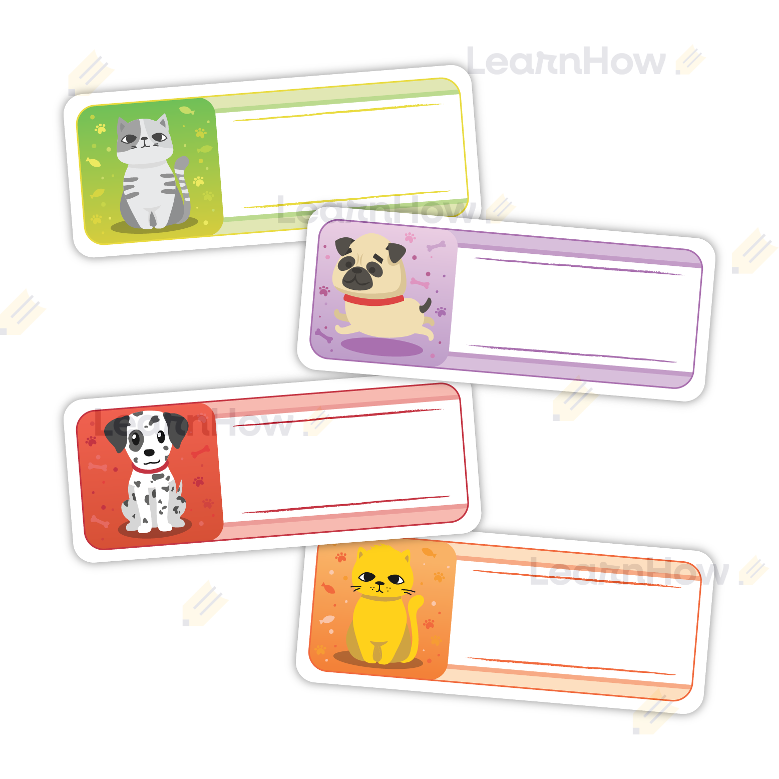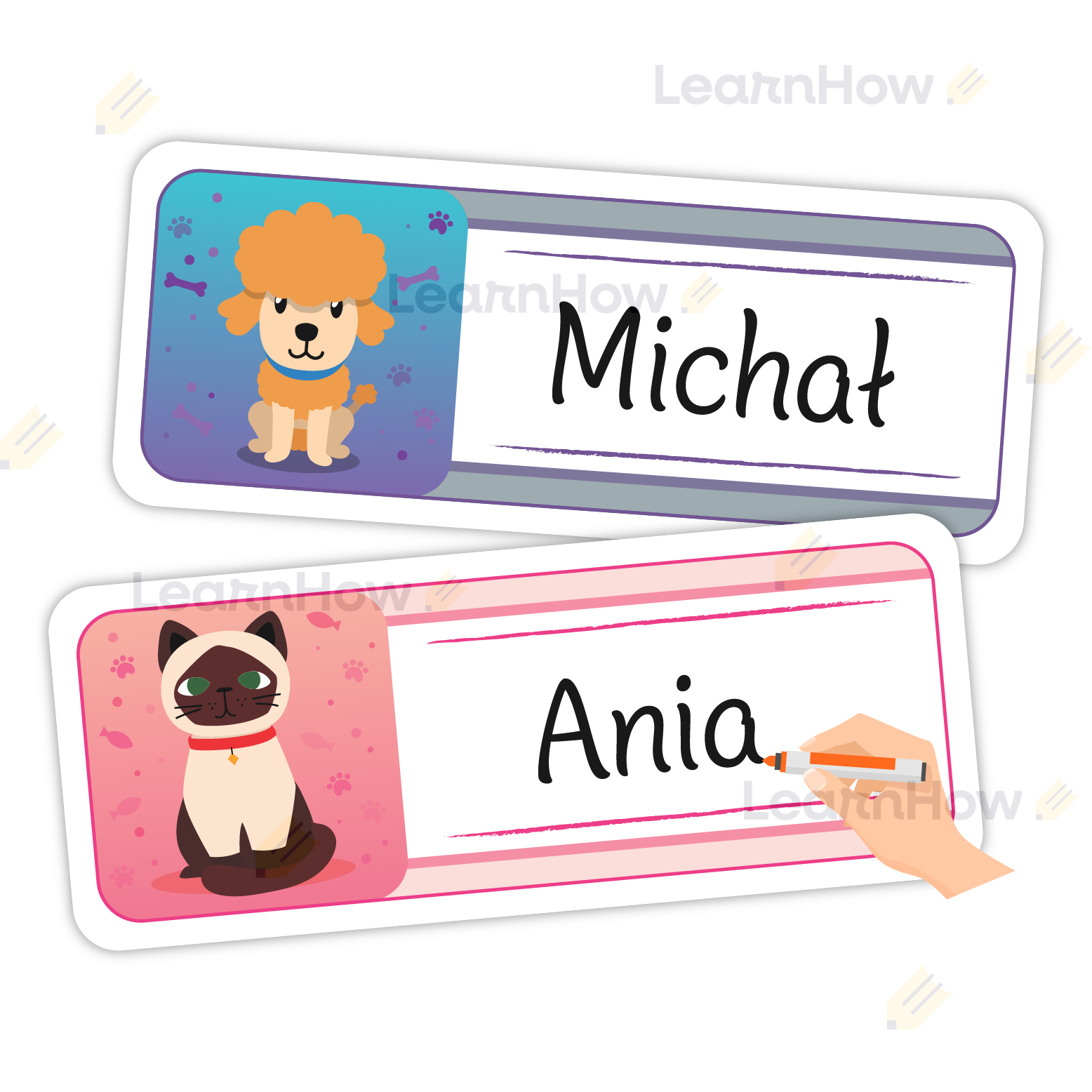 Na każdej karcie znajduje się inne zwierzątko oraz miejsce na wpisanie imienia dziecka.