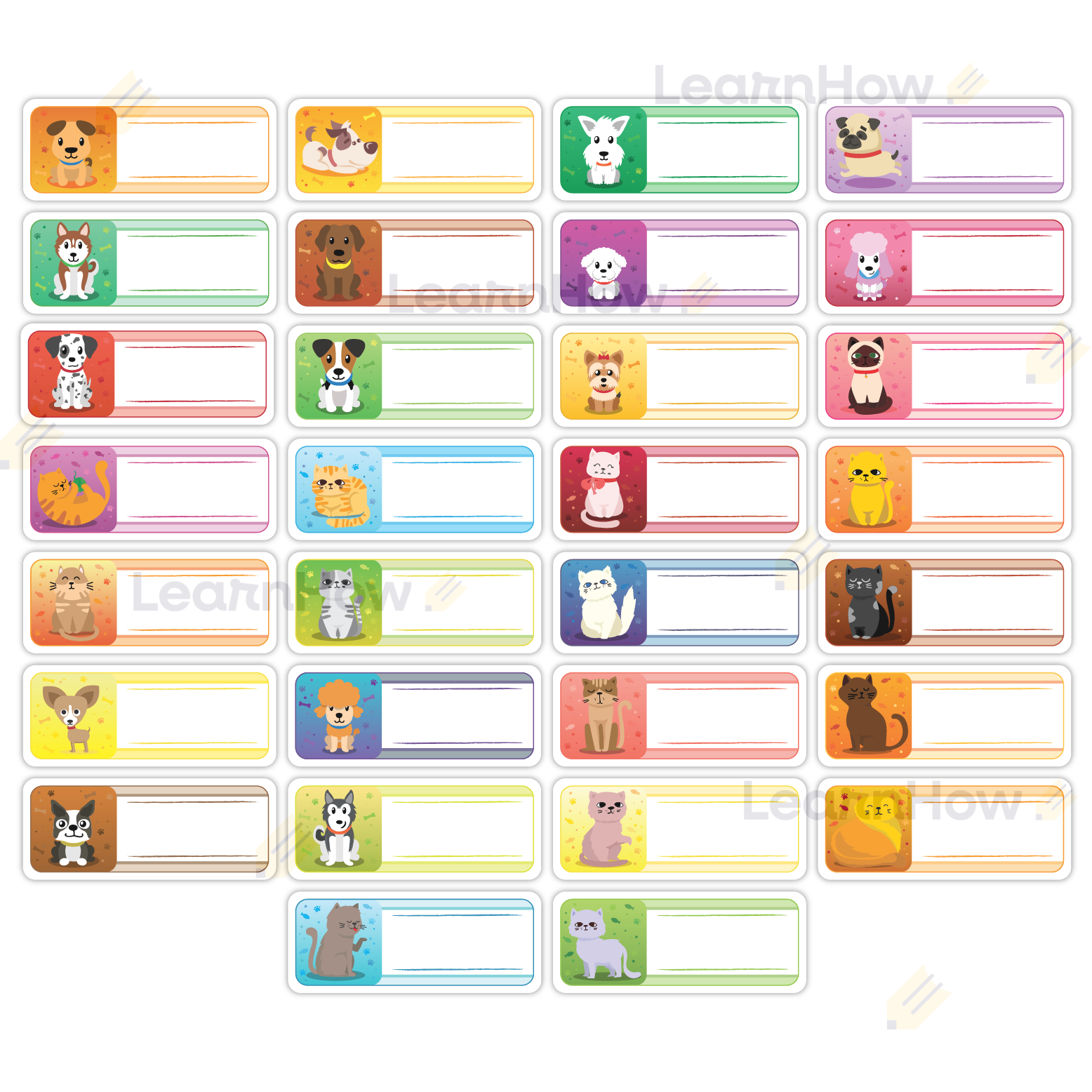 ZNACZKI DO SZATNI - PIESKI I KOTKI - (30 szt. + kropki klejowe)